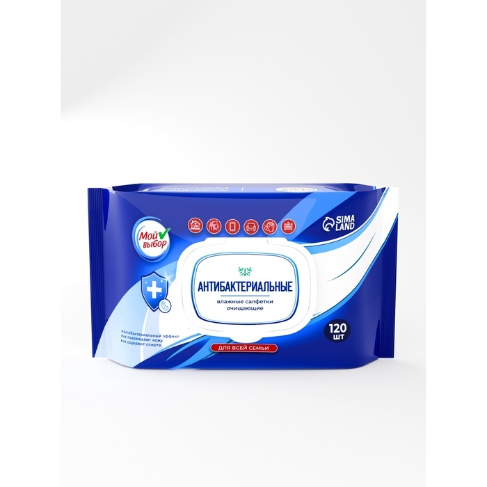 Влажные салфетки антибактериальные Мой выбор, с клапаном, 120 шт