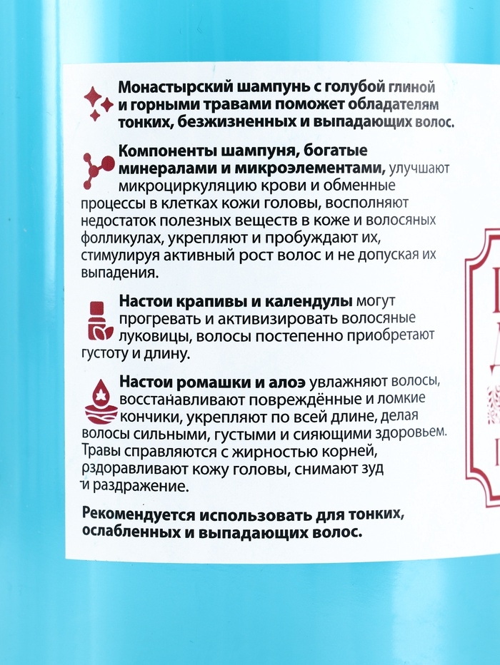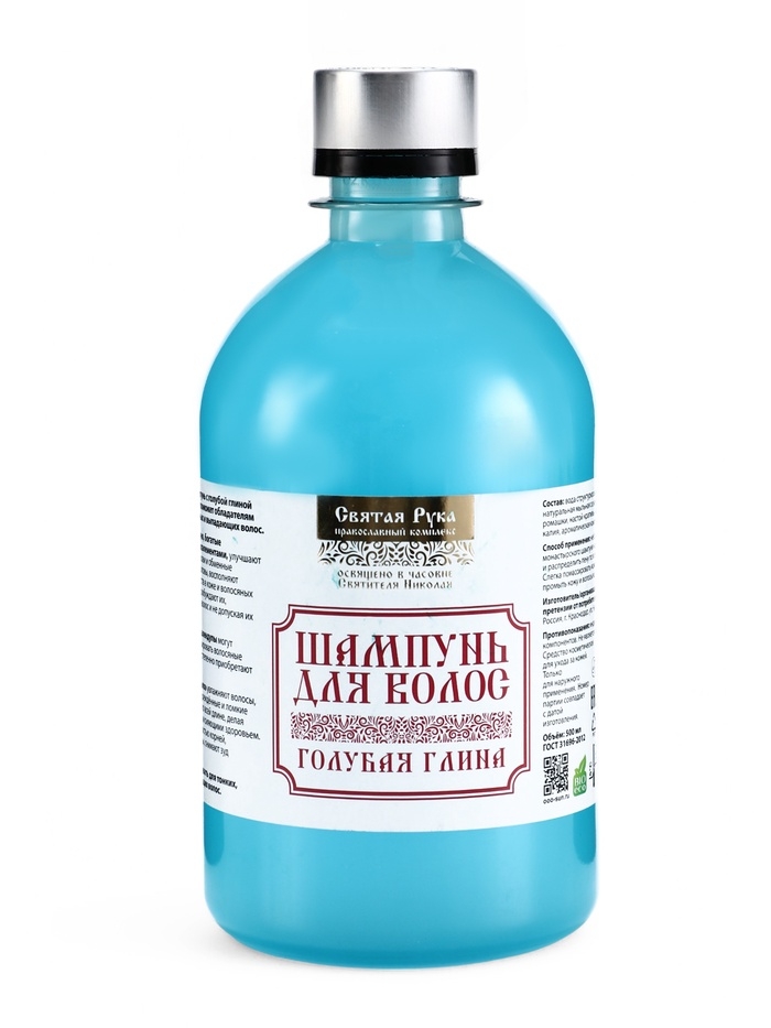 Шампунь для волос голубая глина, "Святая рука", 500 мл