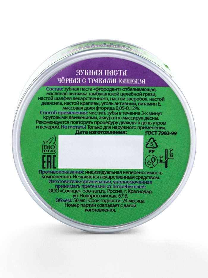Паста зубная черная с Кавказскими травами, "Святая рука", 50 мл