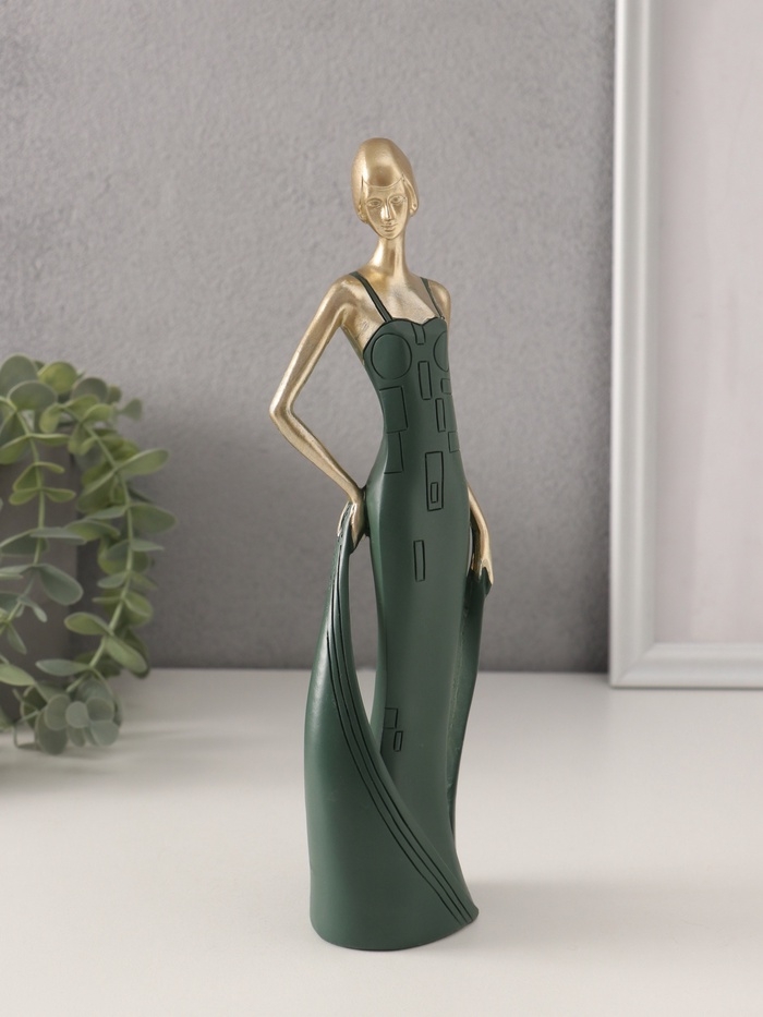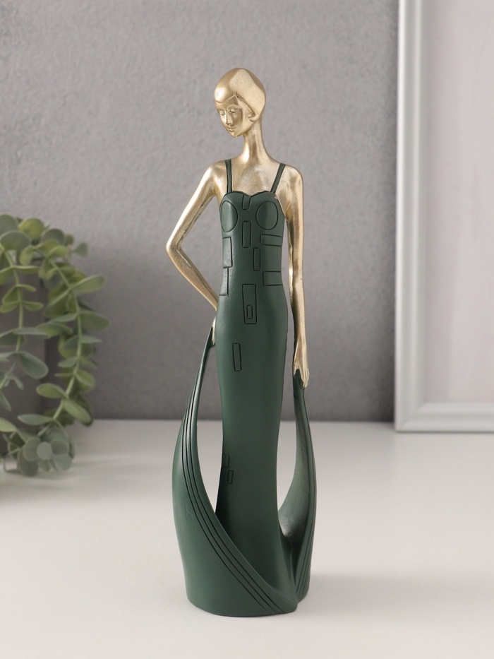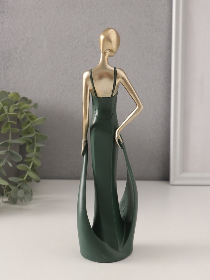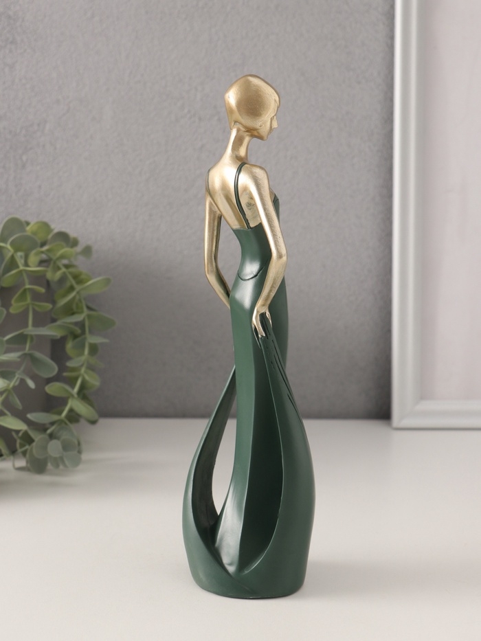 Сувенир полистоун "Девушка в зелёном платье со шлейфом" золото 7х5х24 см