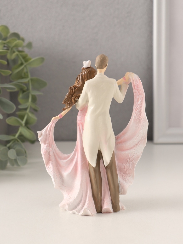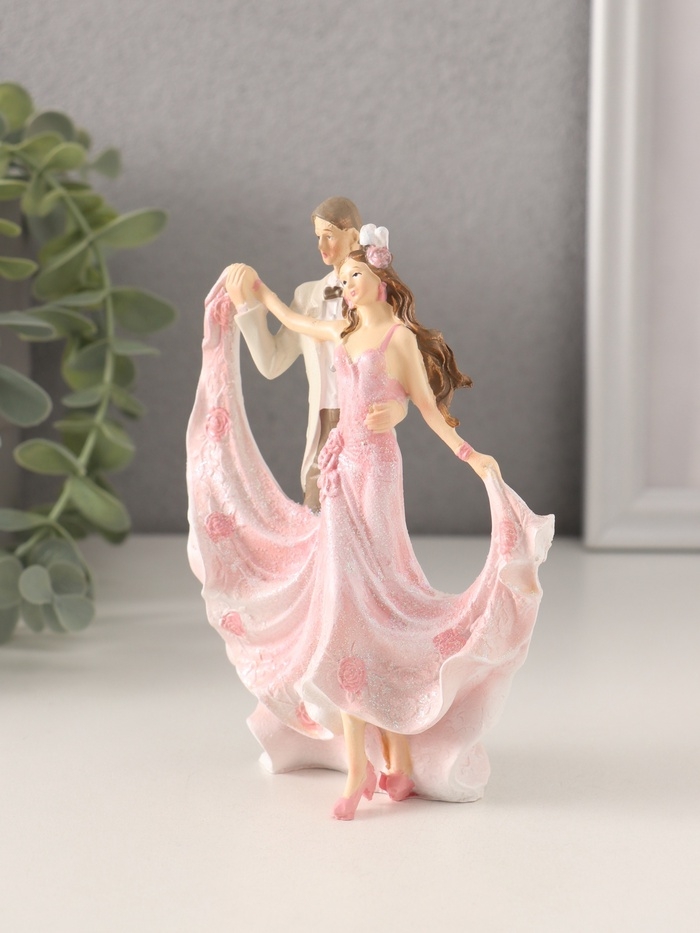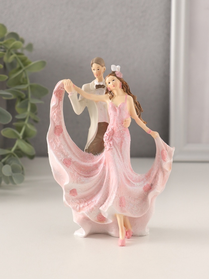 Сувенир полистоун "Танцующая пара" бело-розовый 9,5х5х13 см