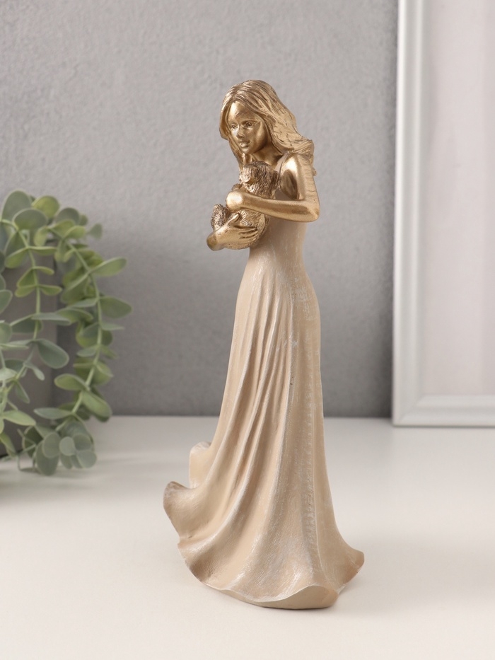 Сувенир полистоун "Девушка с щенком на руках" 11х7,5х22,5 см