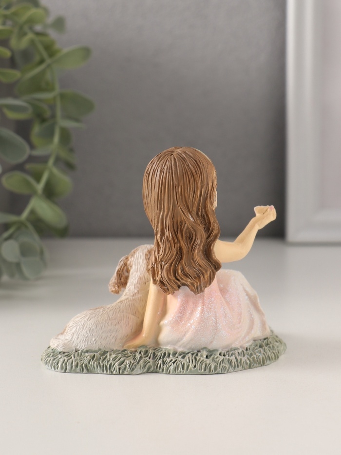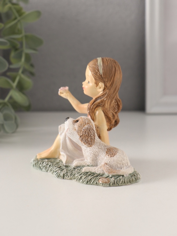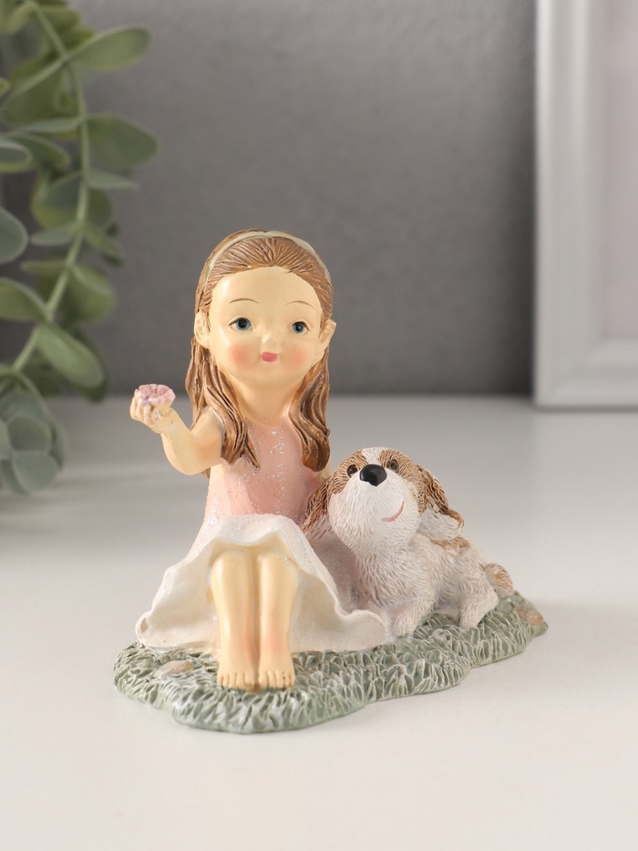 Сувенир полистоун "Малышка в розовом платье с собачкой на лужайке" 10х6,5х8,5 см