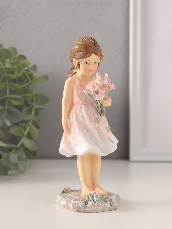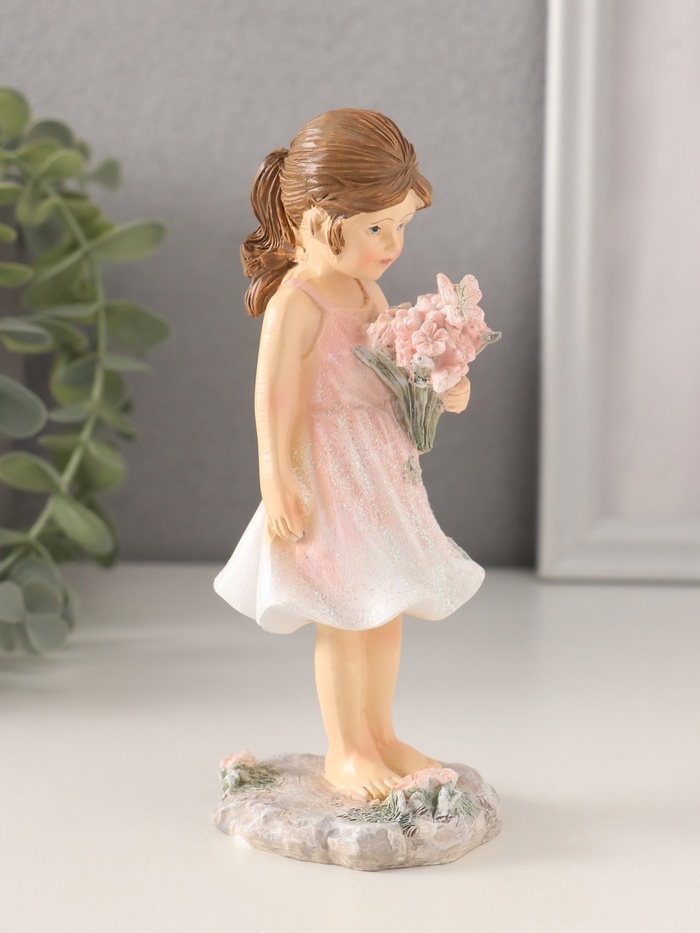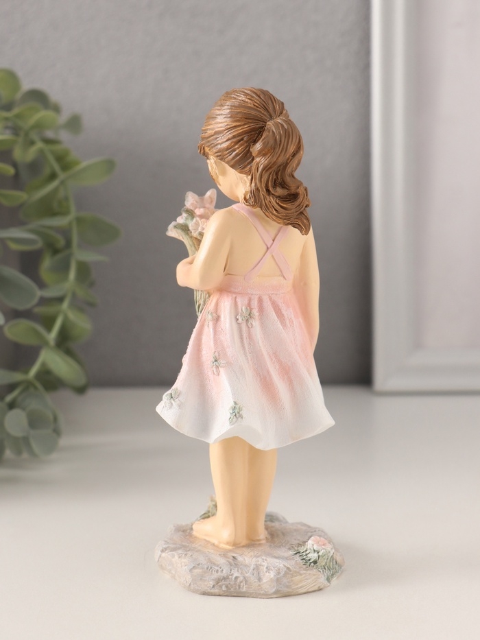 Сувенир полистоун "Малышка в розовом сарафане, с букетом" 6,5х6х15 см