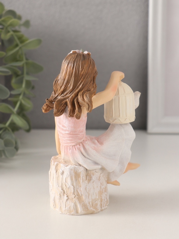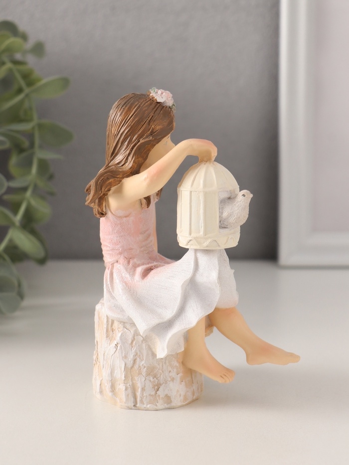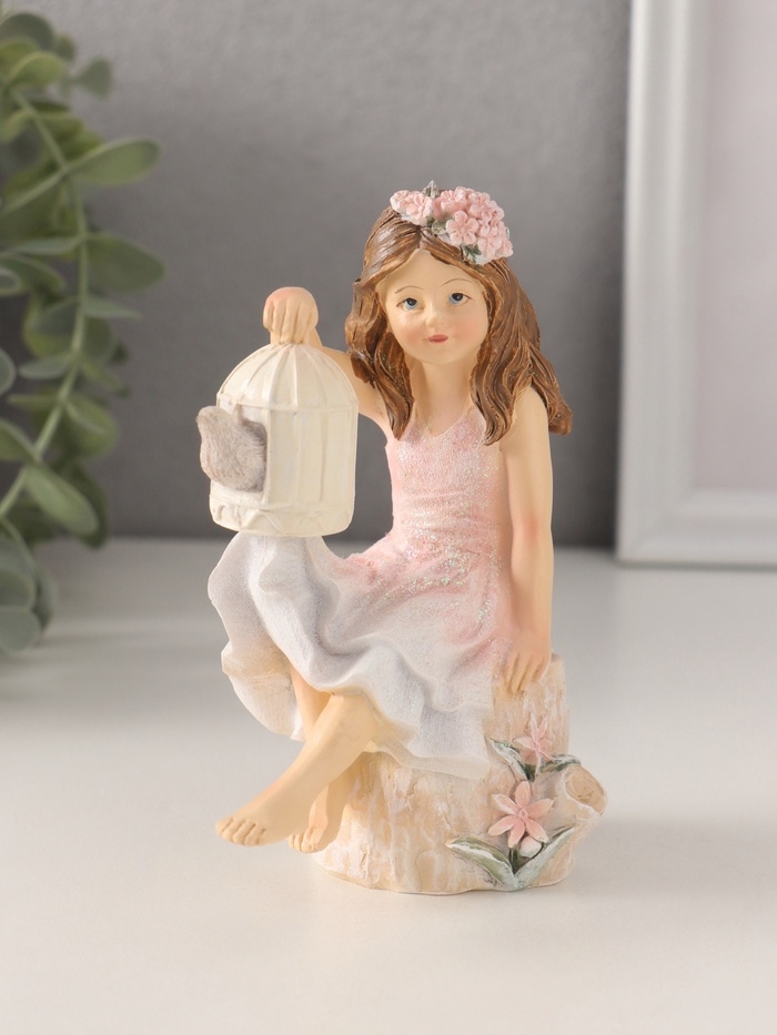 Сувенир полистоун "Девочка с клеткой и птицей, на камне" 9х6,5х12,5 см