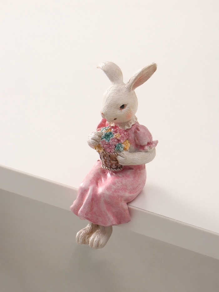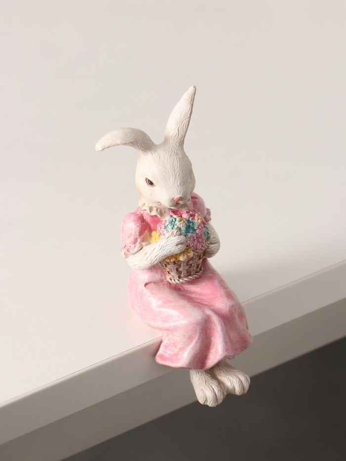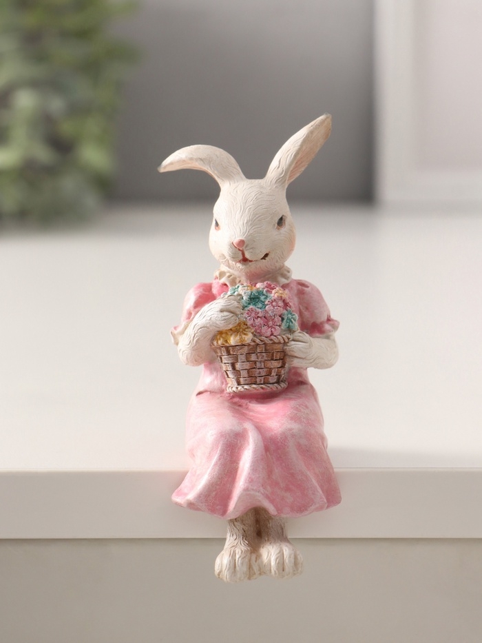 Сувенир полистоун "Зайка с цветочной корзинкой, в розовом платье" 7,5х4,5х12 см