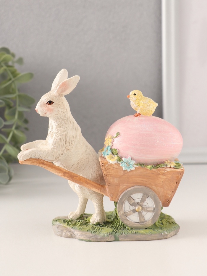 Сувенир полистоун "Кролик везёт тележку с цыплёнком и пасхальным яйцом" 13,5х6х13 см