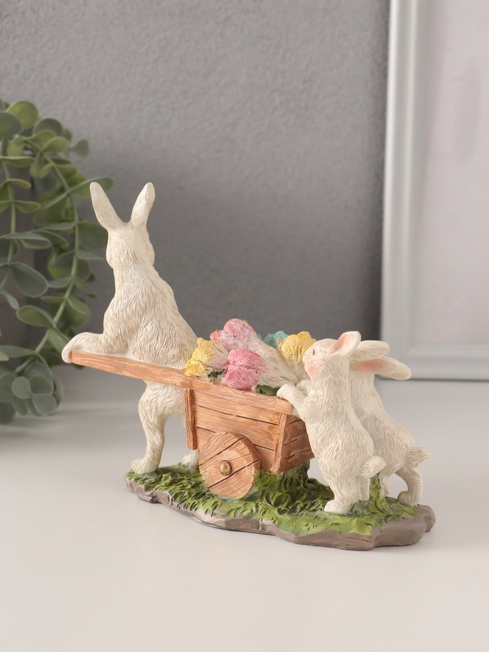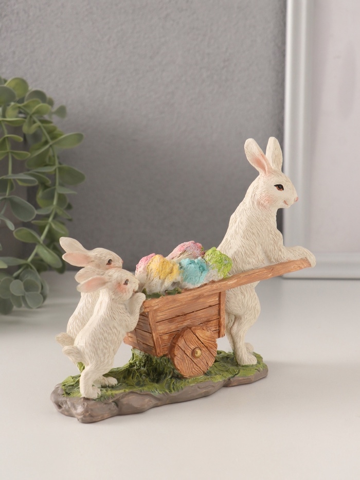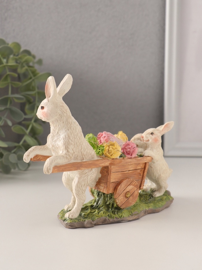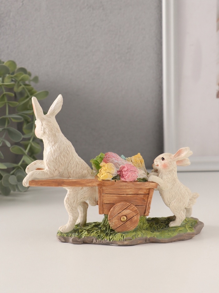 Сувенир полистоун "Кролики везут тележку с капустой" 16х5,5х13 см