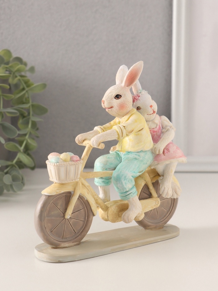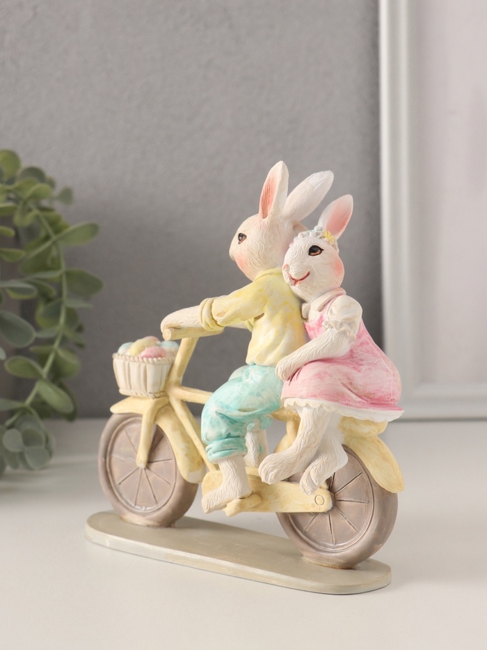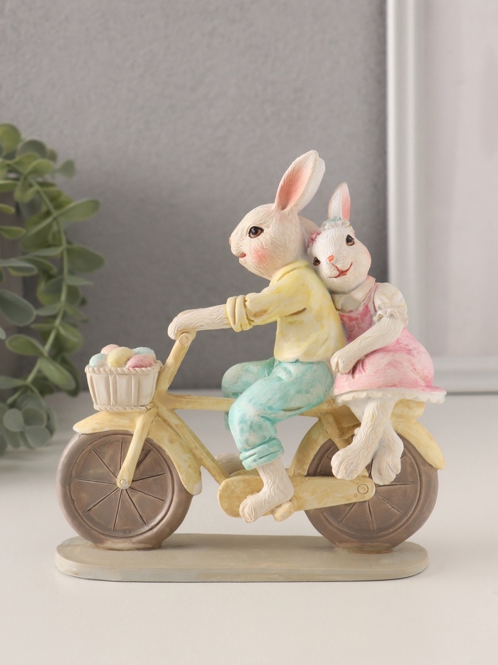 Сувенир полистоун "Кролики - прогулка на велосипеде" 14,5х5х15 см