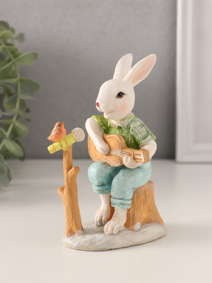 Сувенир полистоун "Зайчик играет на гитаре для птички" 8,5х6,5х12 см