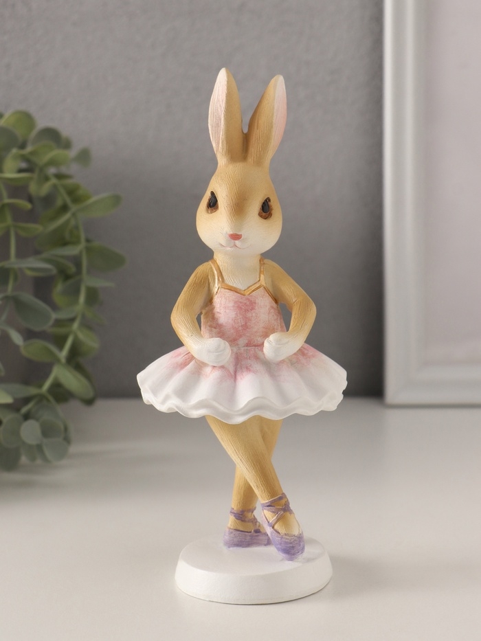 Сувенир полистоун "Зайка-балерина в бело-розовой пачке" 7х7х18 см
