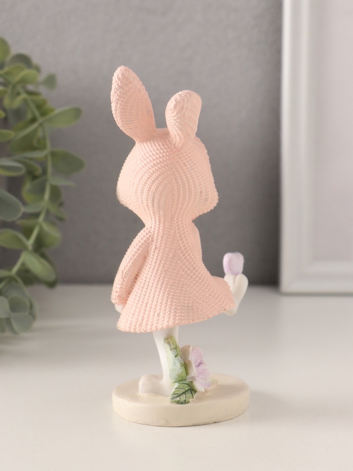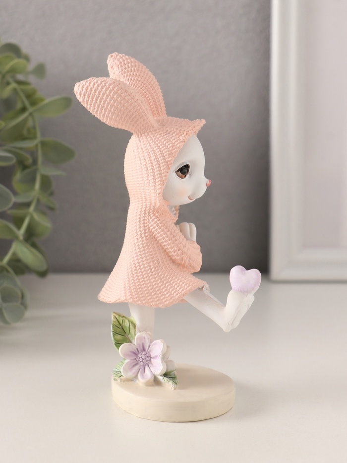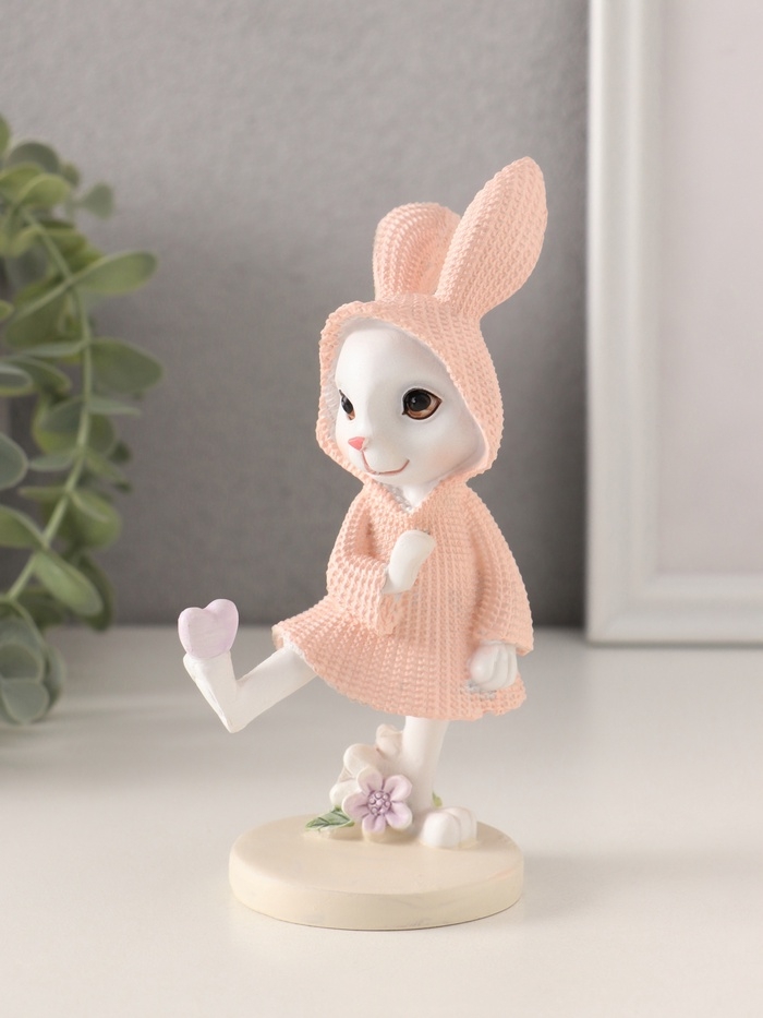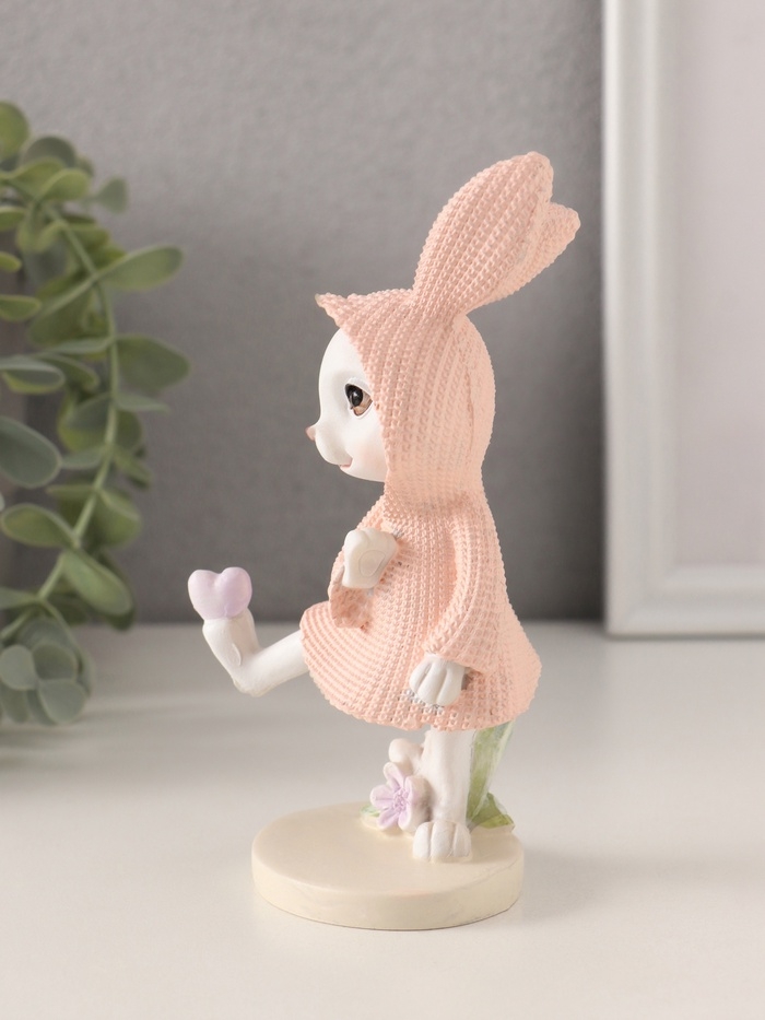 Сувенир полистоун "Зайка в вязаном розовом платьице, сердечко на лапе" 8х5,5х14,5 см