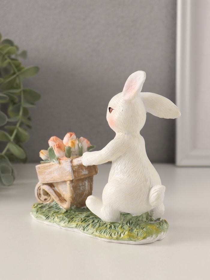 Сувенир полистоун "Кролик везет тележку с тюльпанами" 13,5х6х12 см