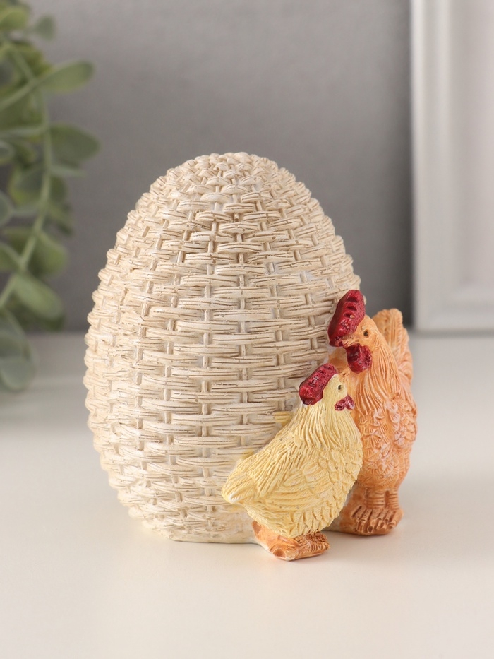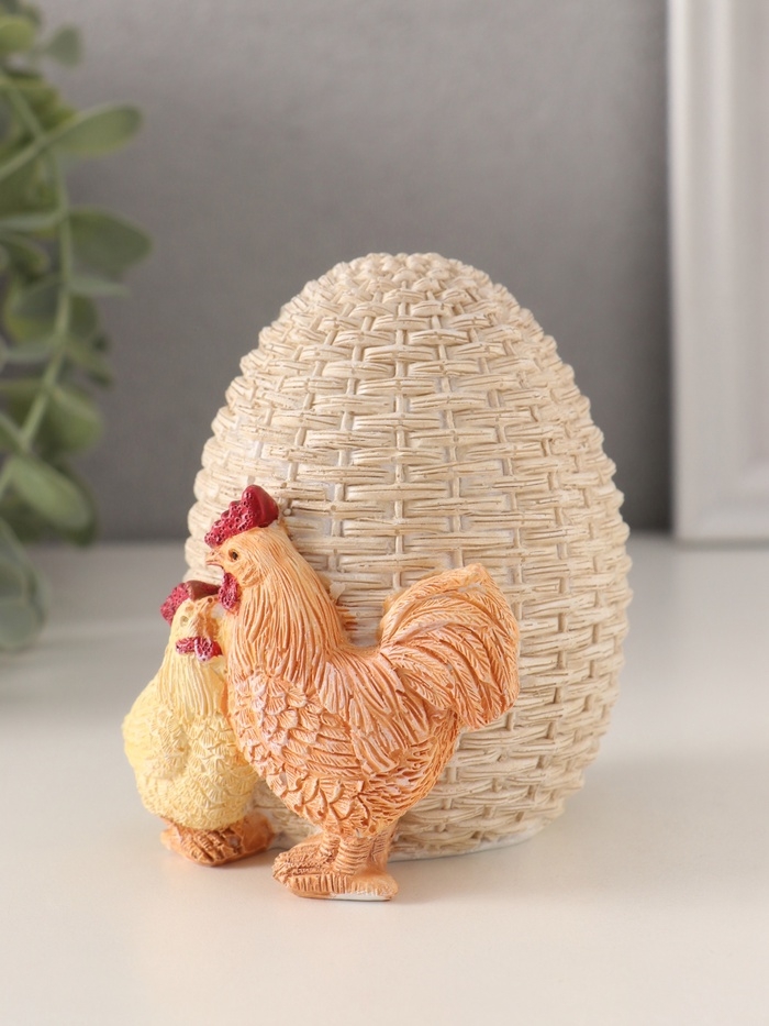 Сувенир полистоун "Курочка и петушок у плетённого яичка" 9х8,5х10 см