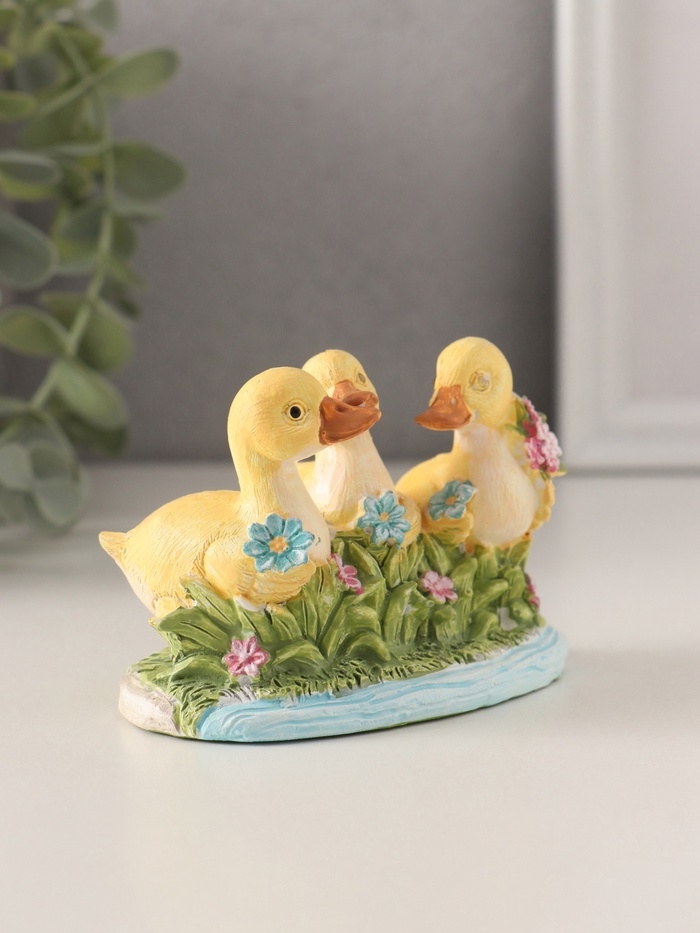 Сувенир полистоун "Утята в пруду с цветами" 9х5,5х6,5 см
