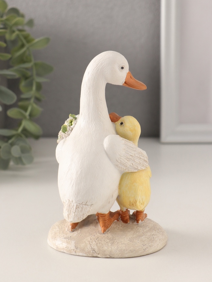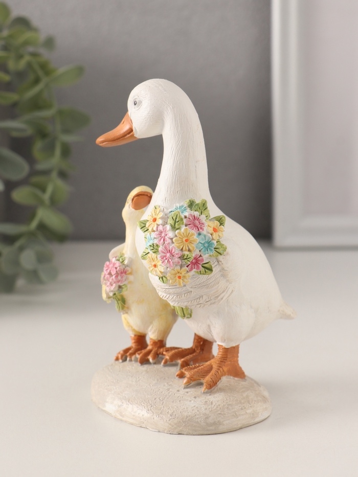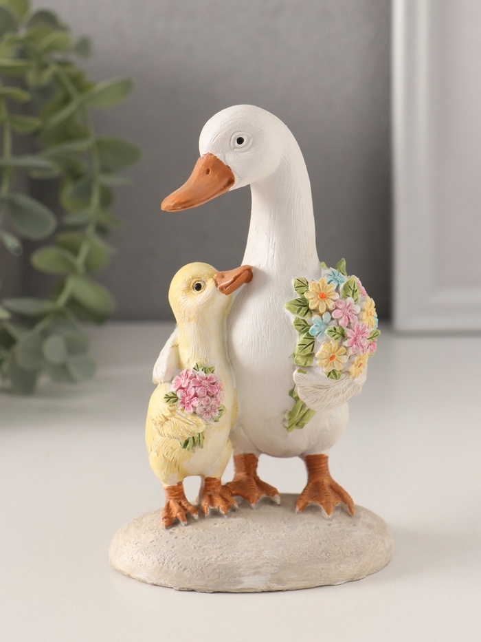 Сувенир полистоун "Утка с утёнком с букетами цветов" 8х8х13 см