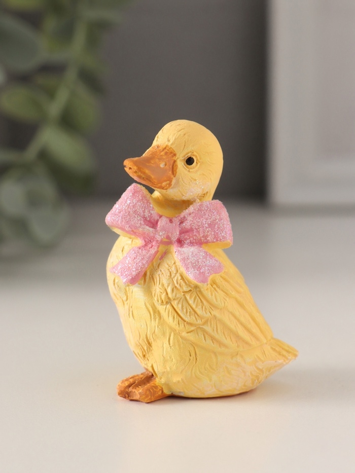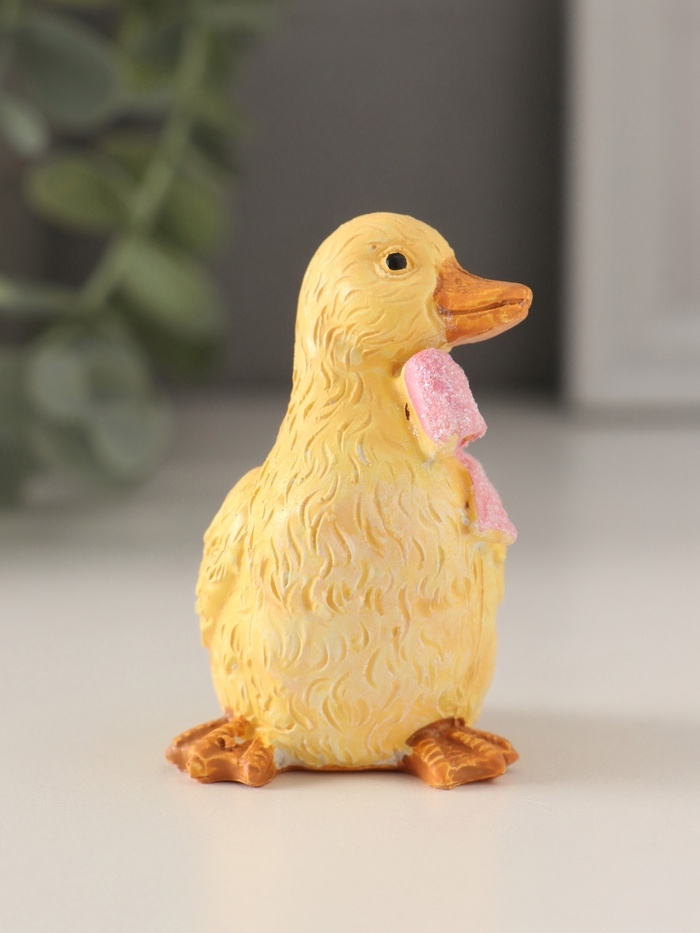 Сувенир полистоун "Утёнок с большим розовым бантом" 4,5х4х6 см