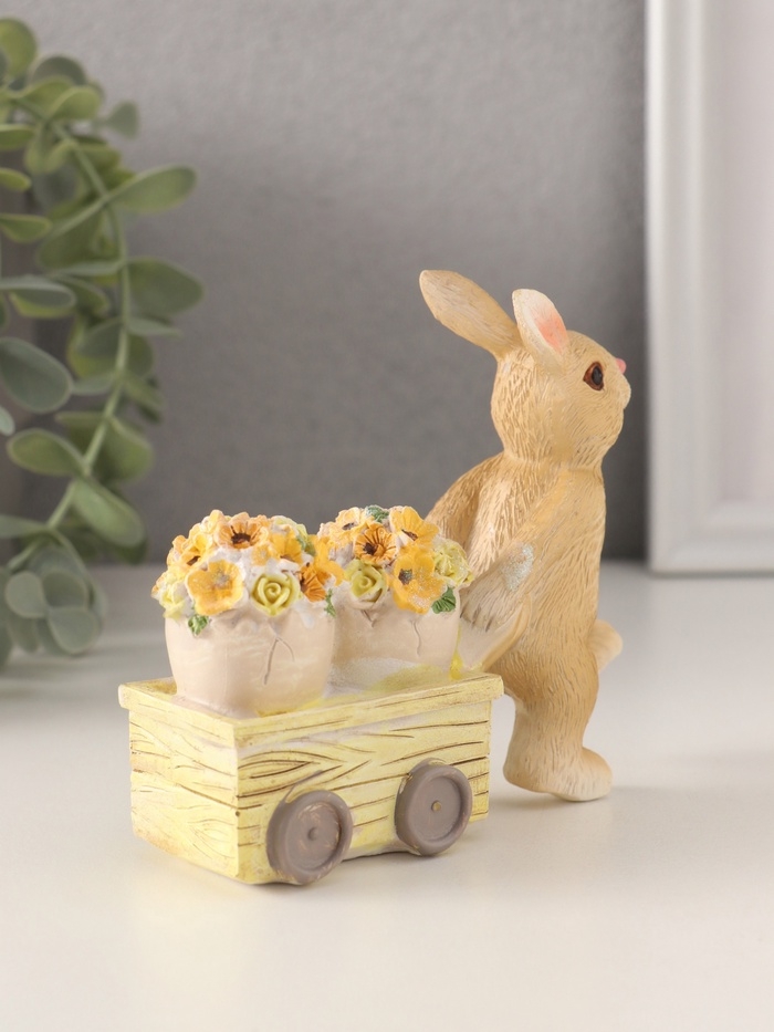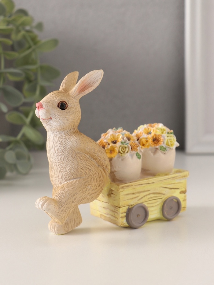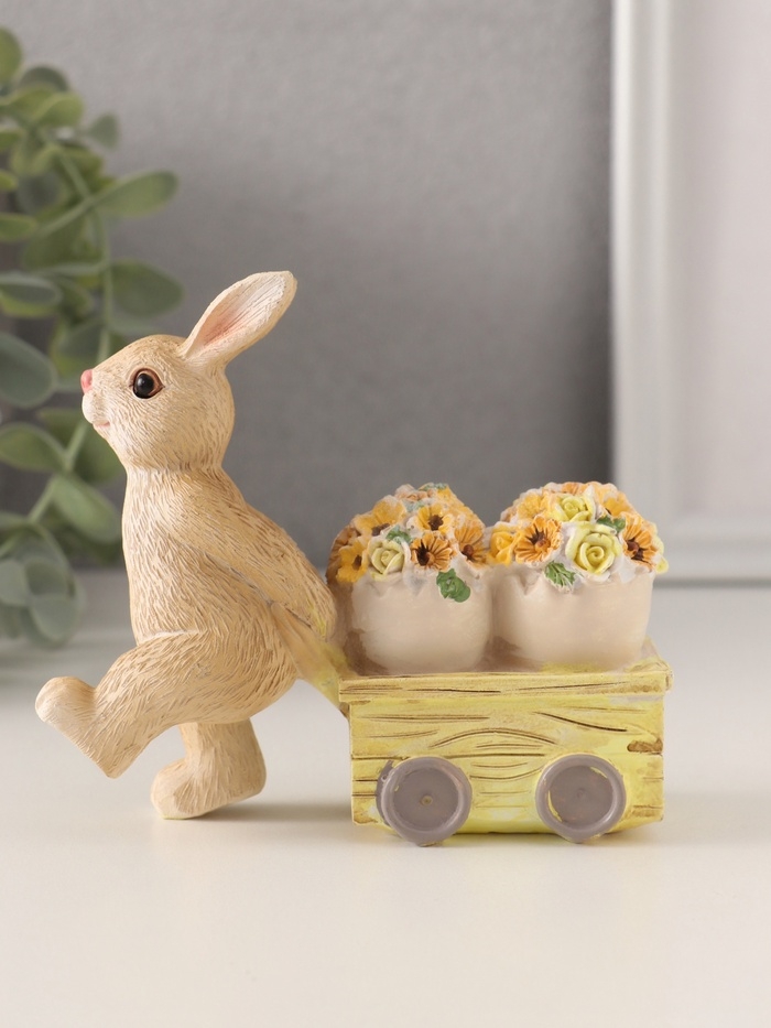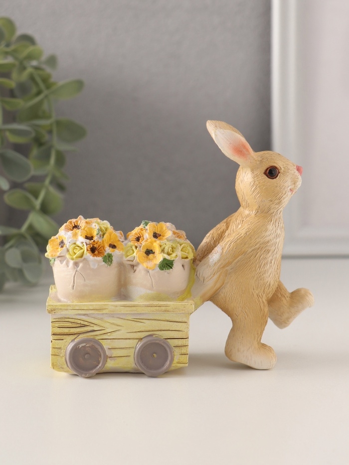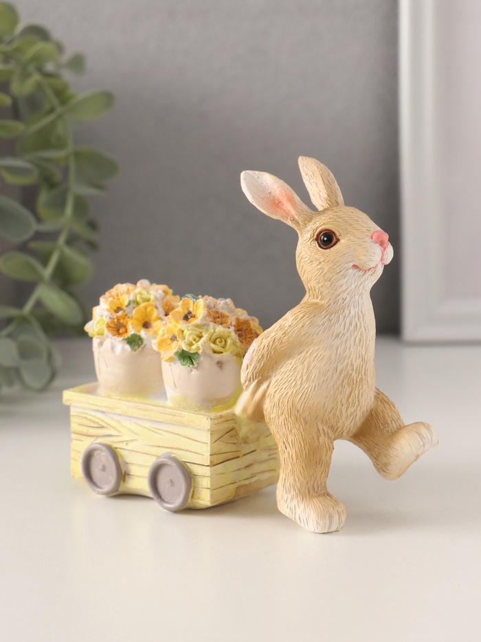 Сувенир полистоун "Зайчик везёт цветочные горшки на тележке" 11х4х10 см