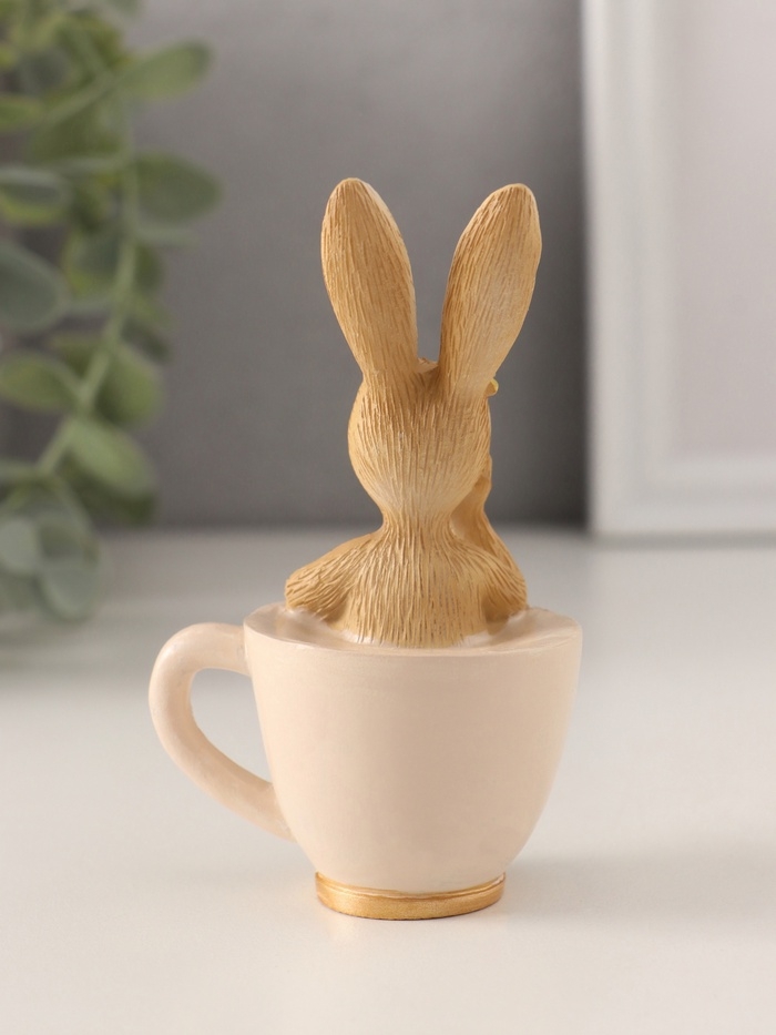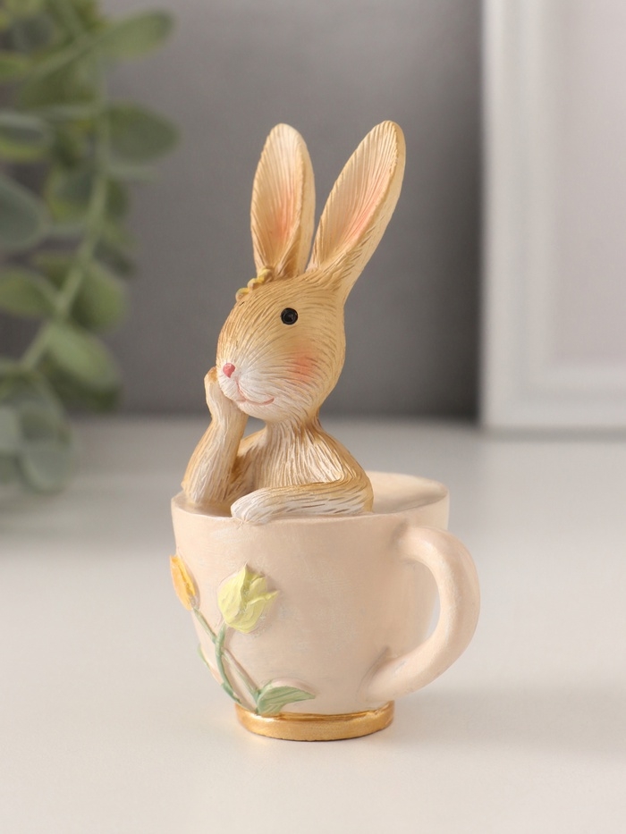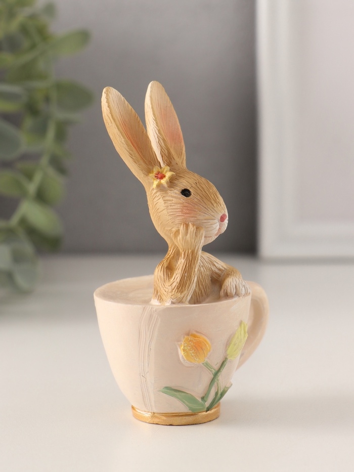 Сувенир полистоун "Кролик в чашечке с тюльпанами" 6х4,5х10 см