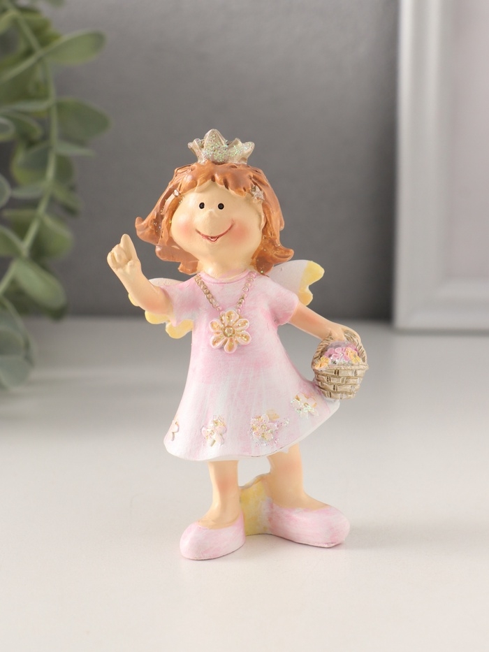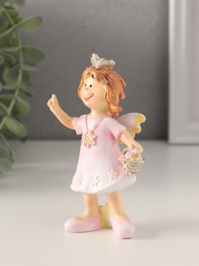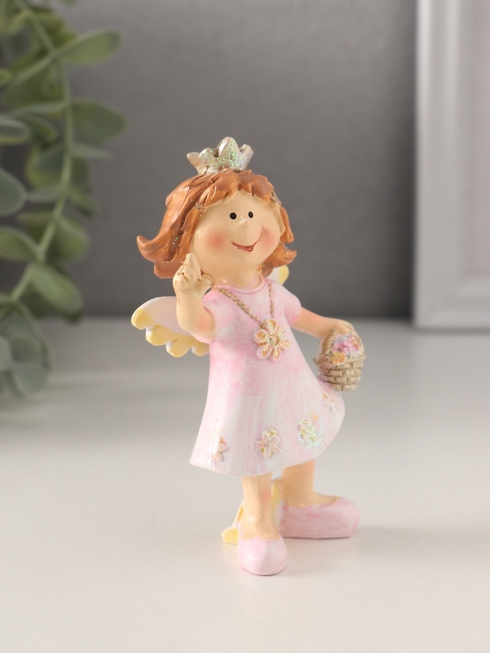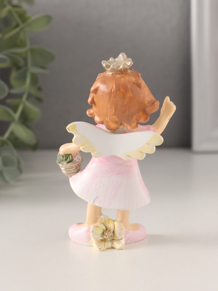 Сувенир полистоун "Принцесса-ангел в розовом платье с корзинкой цветов" 7х4х10 см