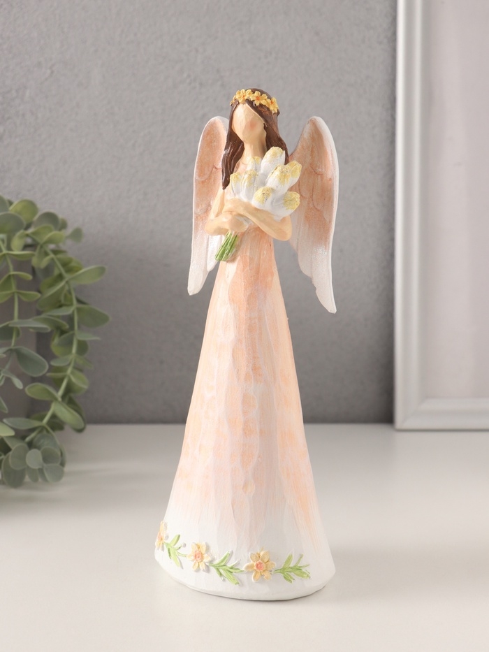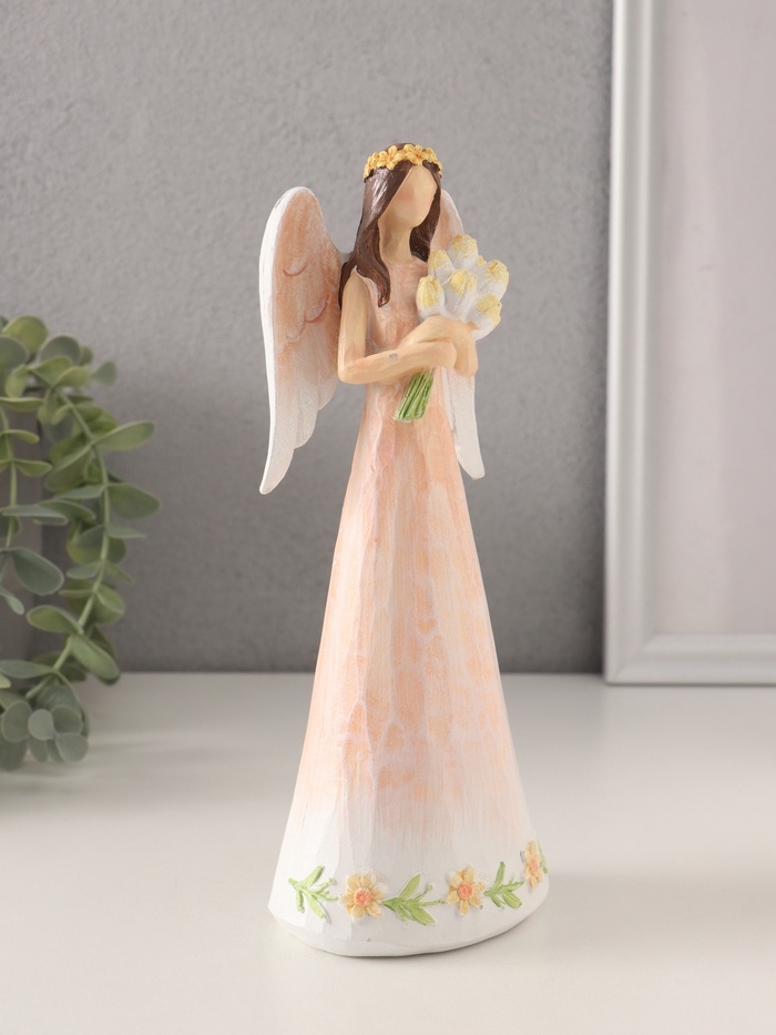 Сувенир полистоун "Девушка-ангел в персиковом платье с букетом тюльпанов" 8,5х6х21,5 см