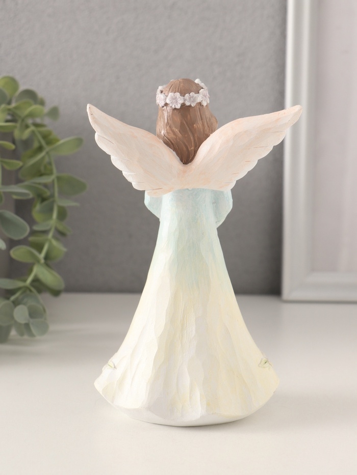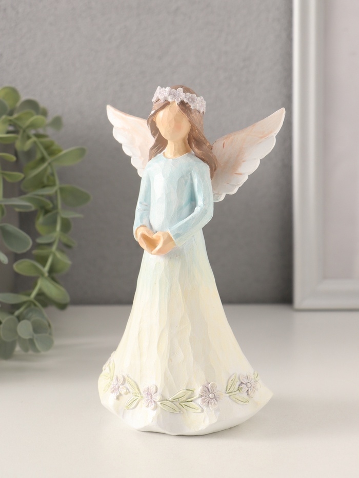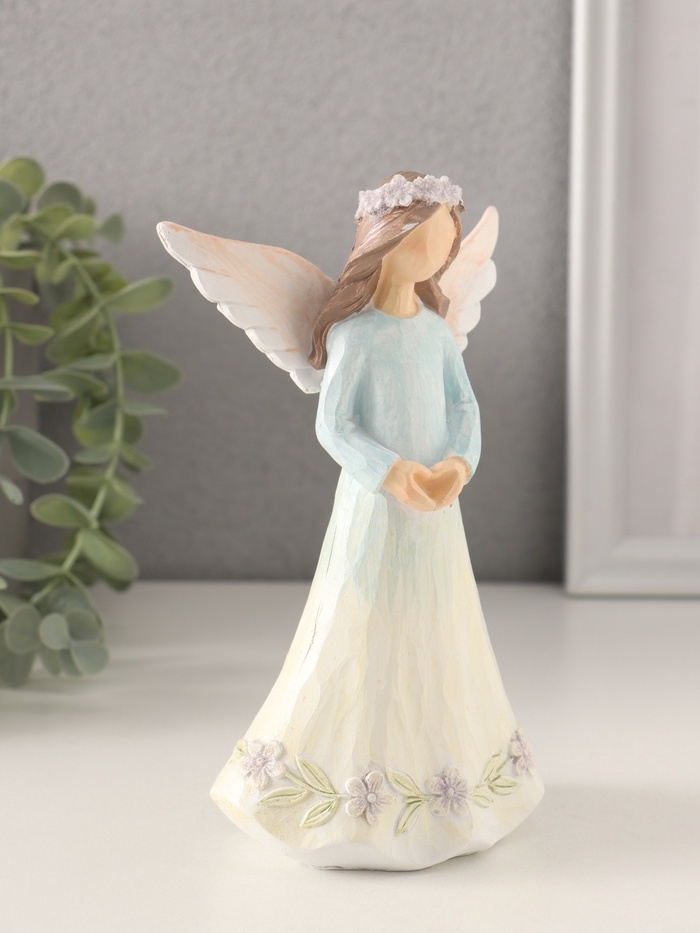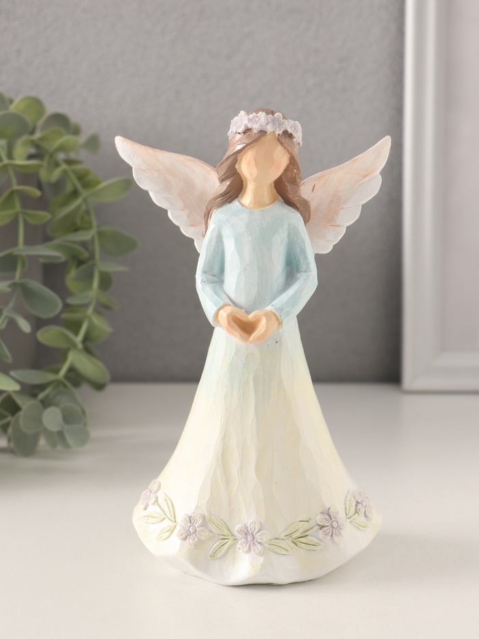 Сувенир полистоун "Девушка-ангел в нежно-голубом платье, руки-сердце" 9,5х6,5х16 см