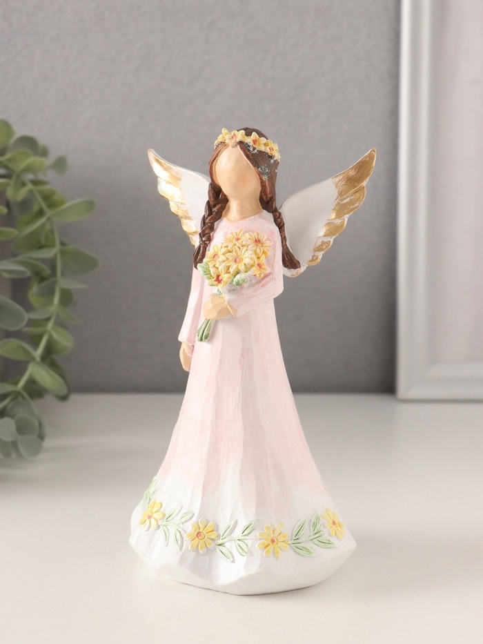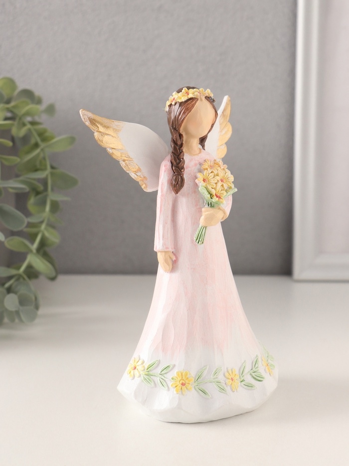 Сувенир полистоун "Девушка-ангел в нежно-розовом платье, с букетом" 9,5х6,5х16 см