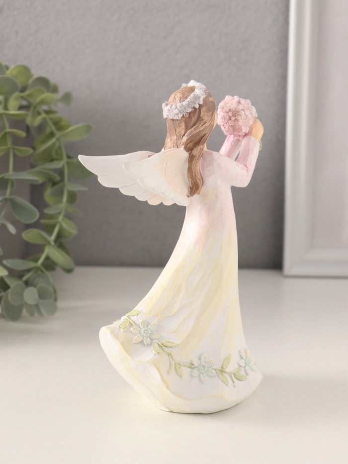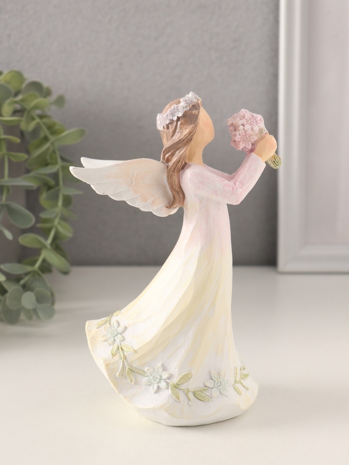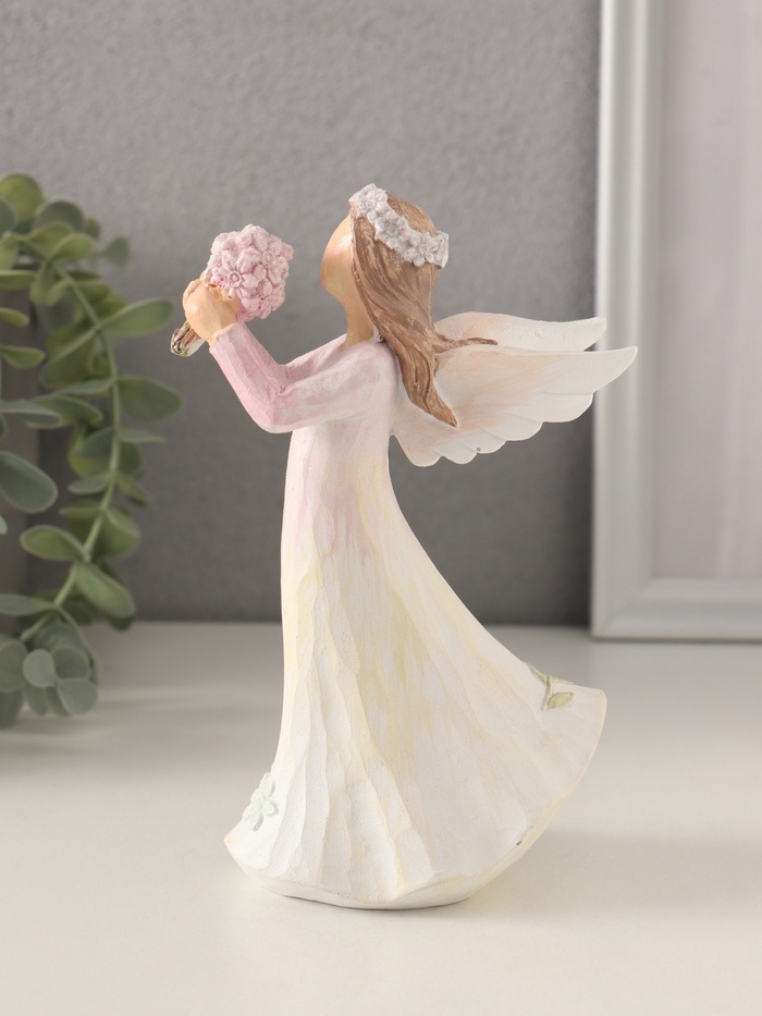 Сувенир полистоун "Девушка-ангел в нежно-розовом платье, с букетом незабудок" 10х6,5х16 см 1058331