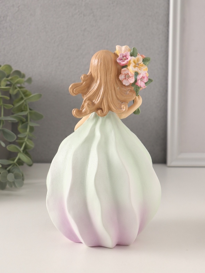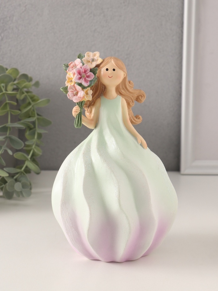 Сувенир полистоун "Девочка-зефирка с букетом" зелёно-фиолетовый 11,5х10,5х18,5 см