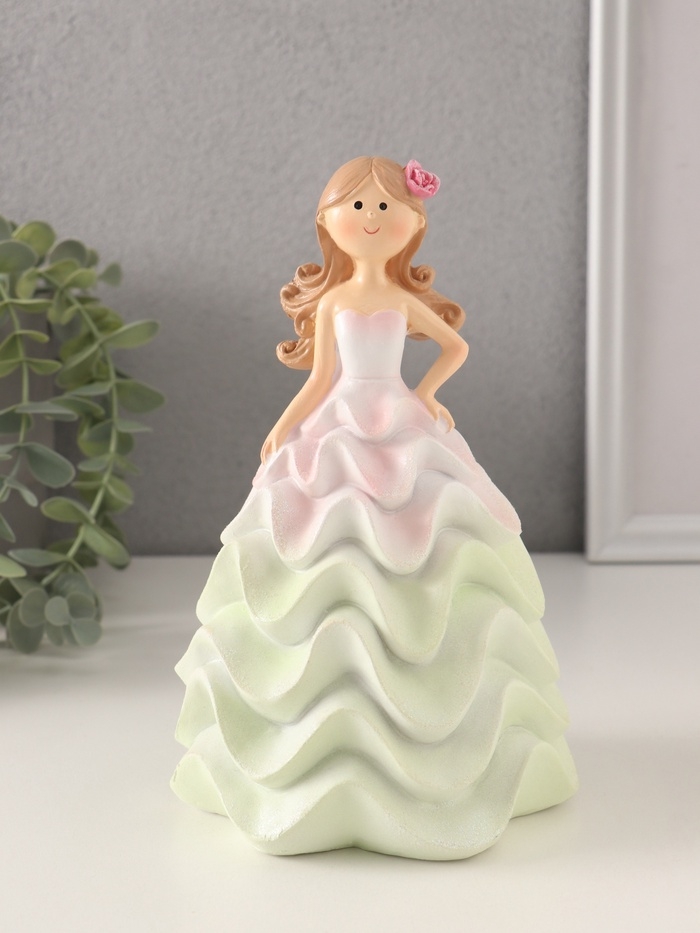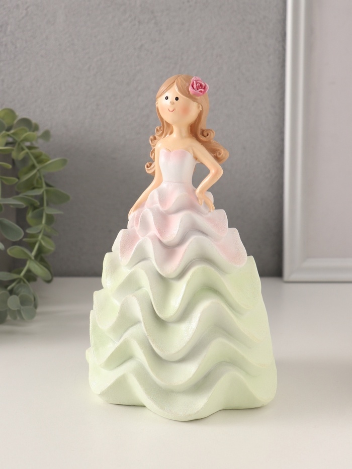 Сувенир полистоун "Девочка-зефирка" розово-зелёный 11,5х10,5х18,5 см