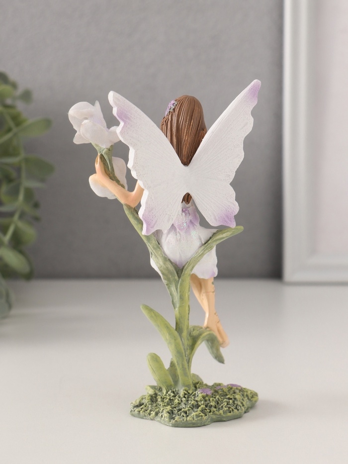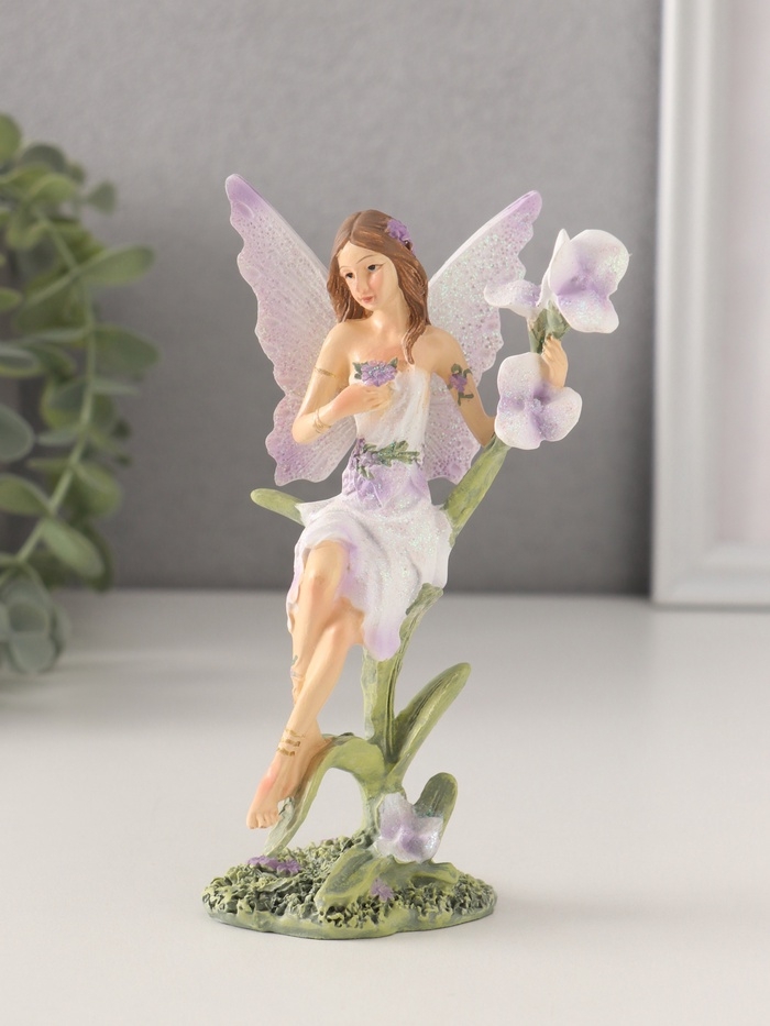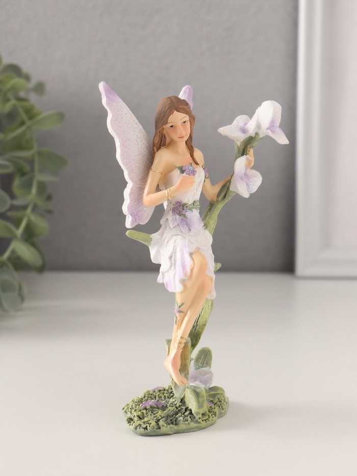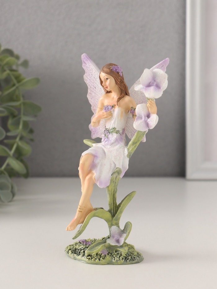 Сувенир полистоун "Девушка-фея в сиреневом платье на цветке" 7,5х6х14 см