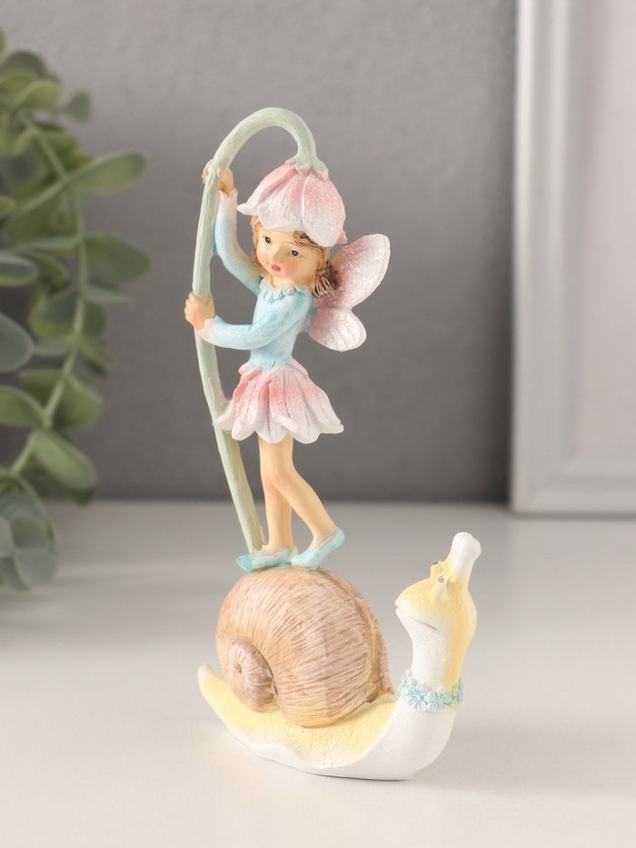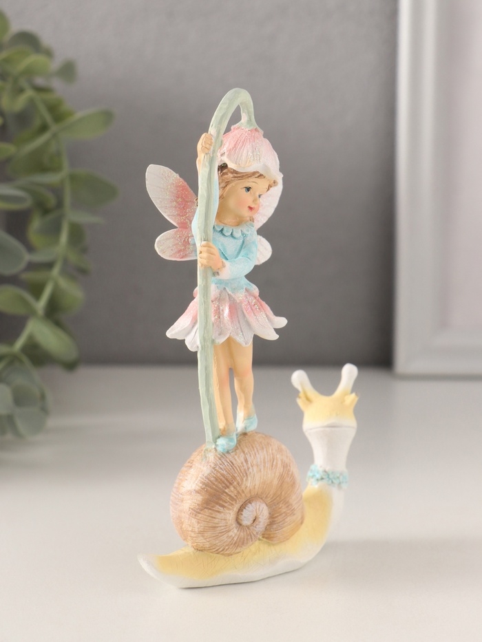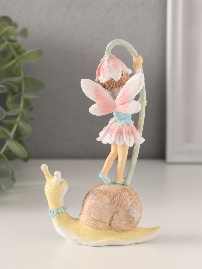 Сувенир полистоун "Девочка-фея на улитке с колокольчиком" 8х3,5х13,5 см