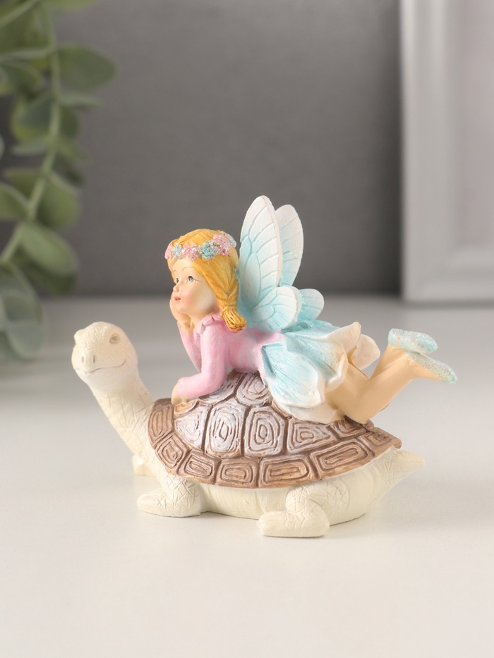 Сувенир полистоун "Девочка-фея верхом на черепахе" 9,5х5х7 см