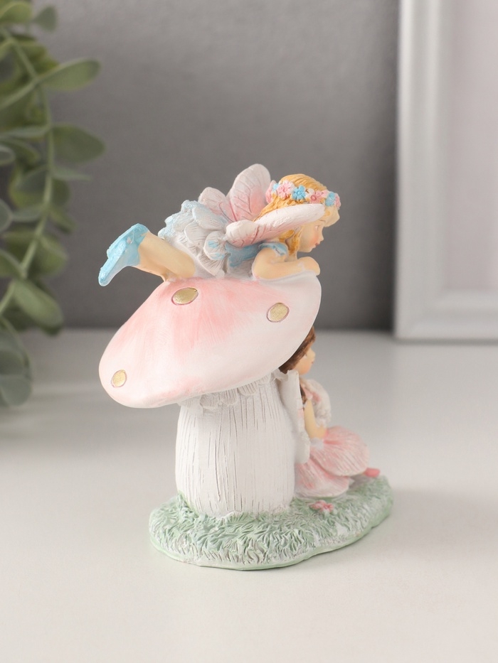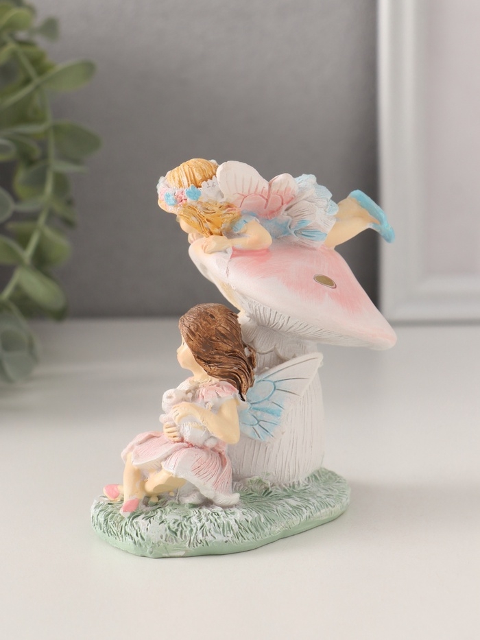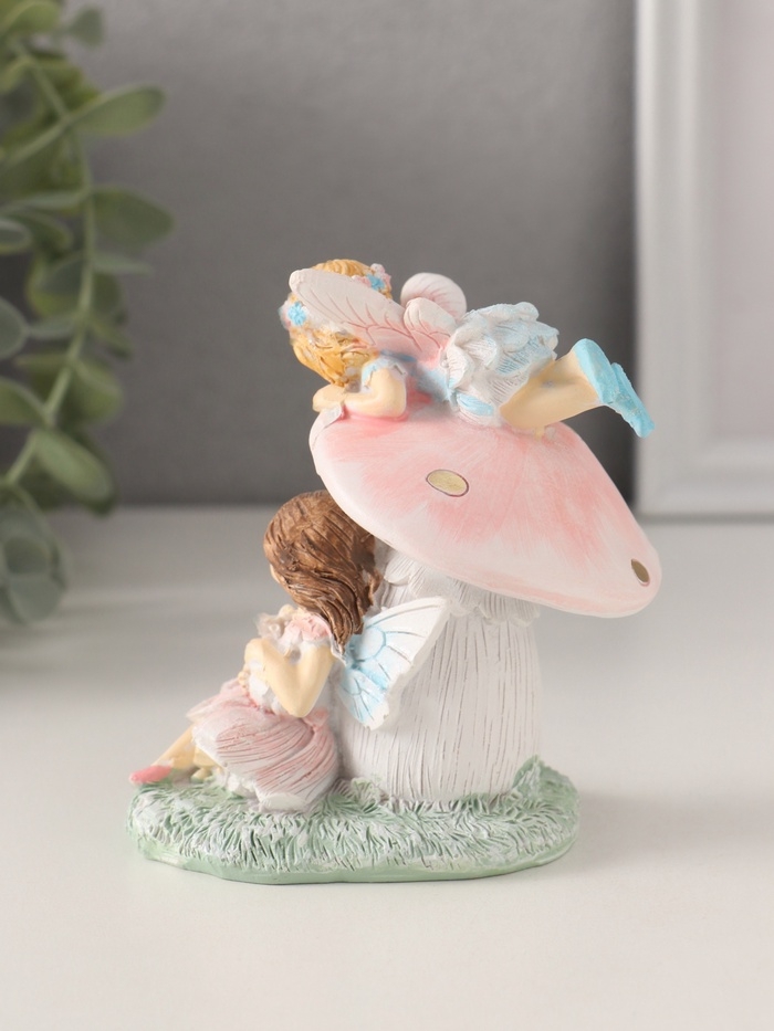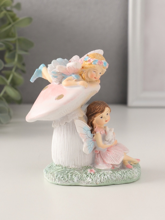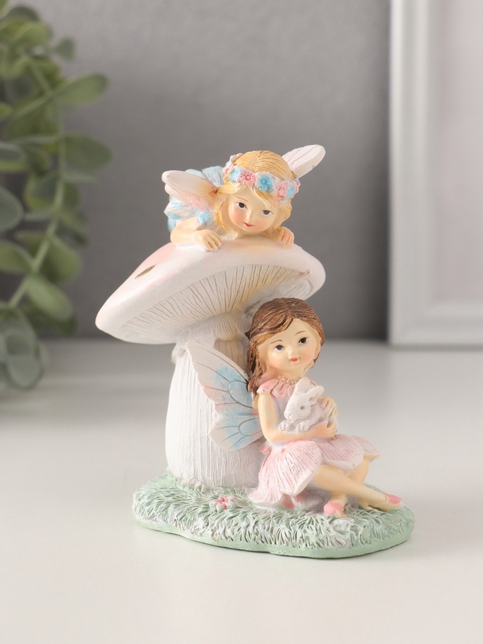 Сувенир полистоун "Девочки-феи с грибочком и кроликом" 9х6,5х10 см