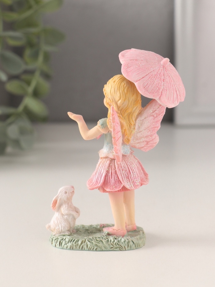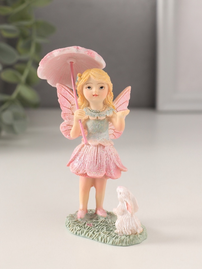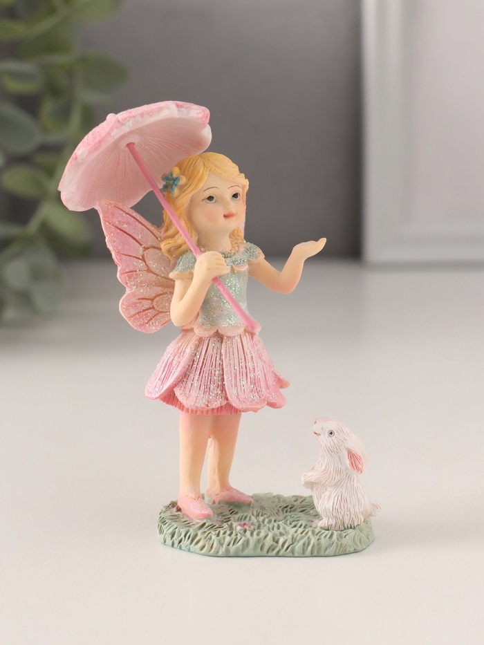 Сувенир полистоун "Девочка-фея под зонтиком с кроликом" 6,5х5х10,5 см