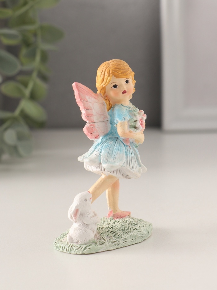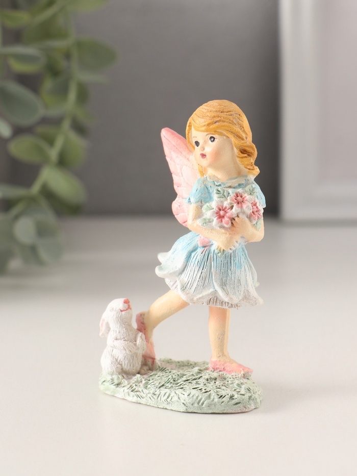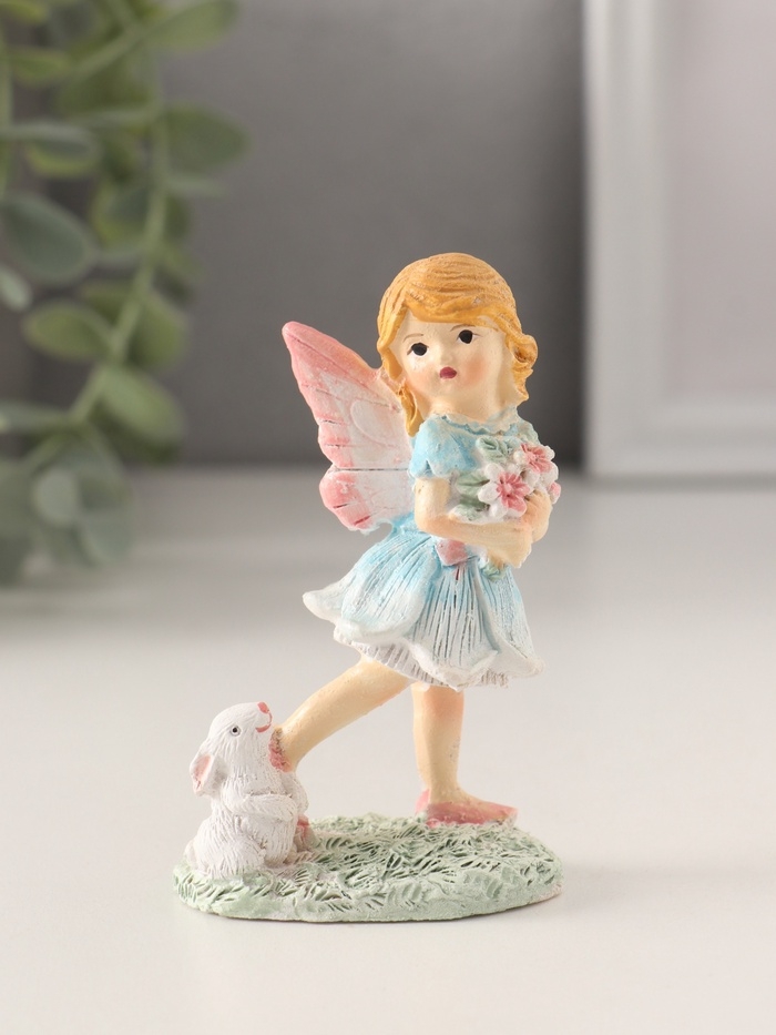 Сувенир полистоун "Девочка-фея с кроликом, охапкой цветов" 5,5х4х9 см