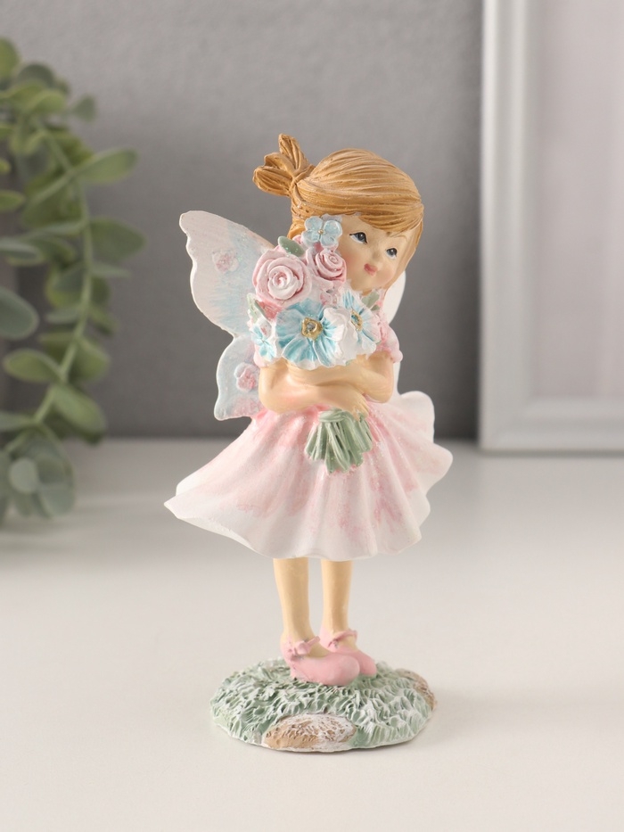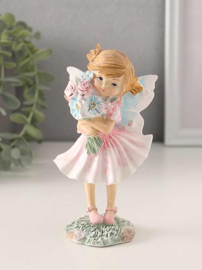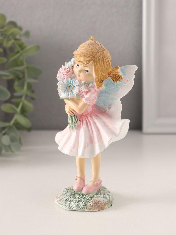 Сувенир полистоун "Девочка-фея в розовом платье с букетом цветов" 7,5х5,5х13,5 см