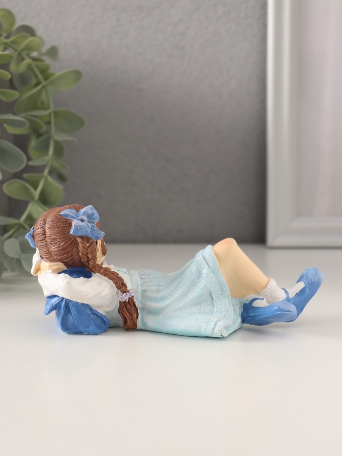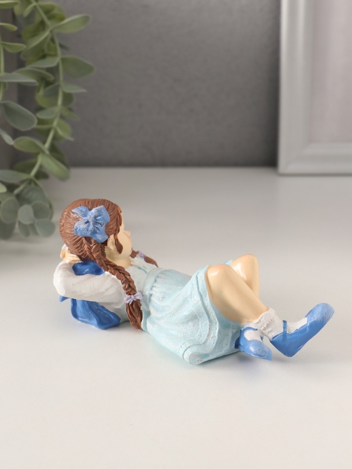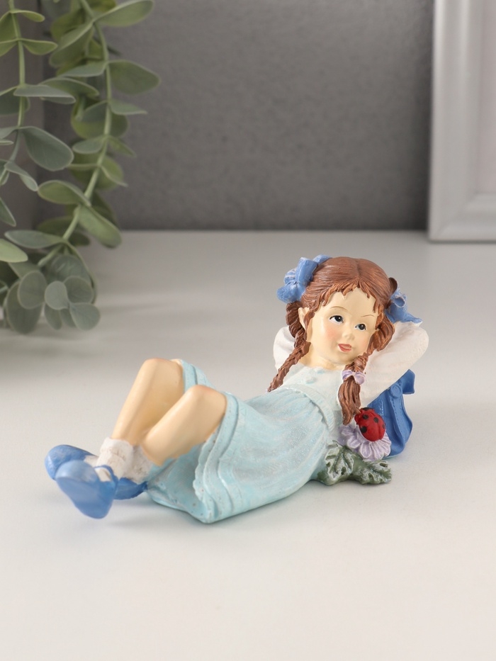 Сувенир полистоун "Малышка лежит на полянке, с рюкзаком" 14х6,5х7 см