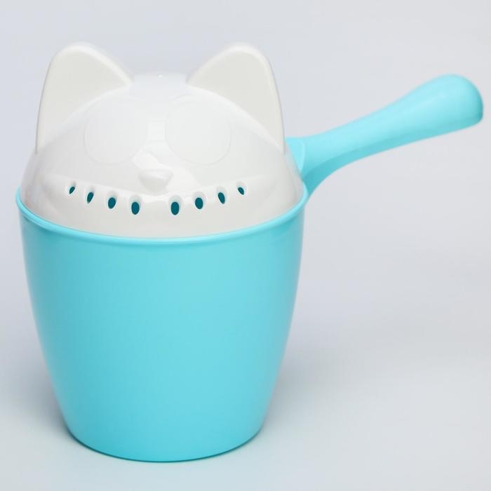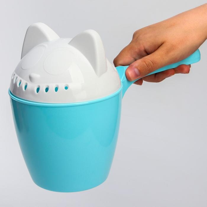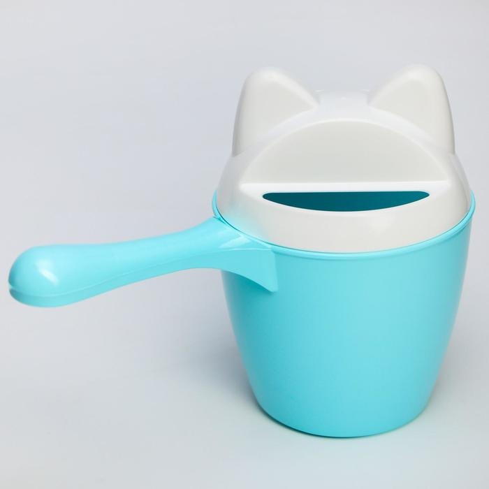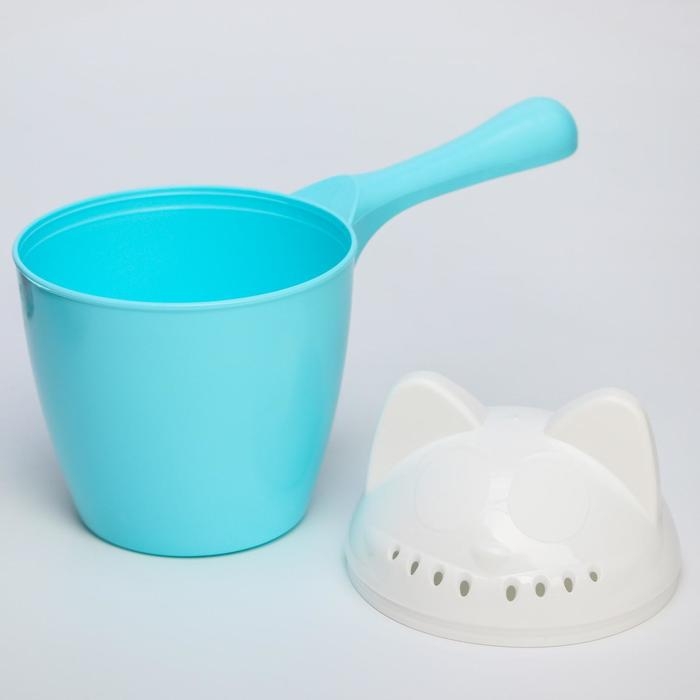 Ковш пластиковый для купания и мытья головы, детский банный ковшик «Котофей», 1 л., с леечкой, цвет голубой