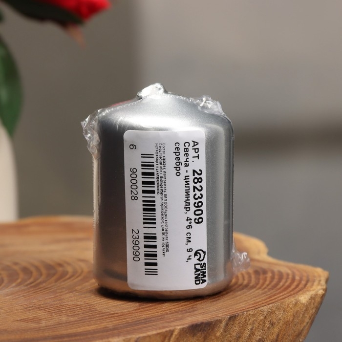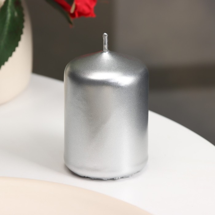 Свеча - цилиндр, 4х6 см, 9 ч, серебро