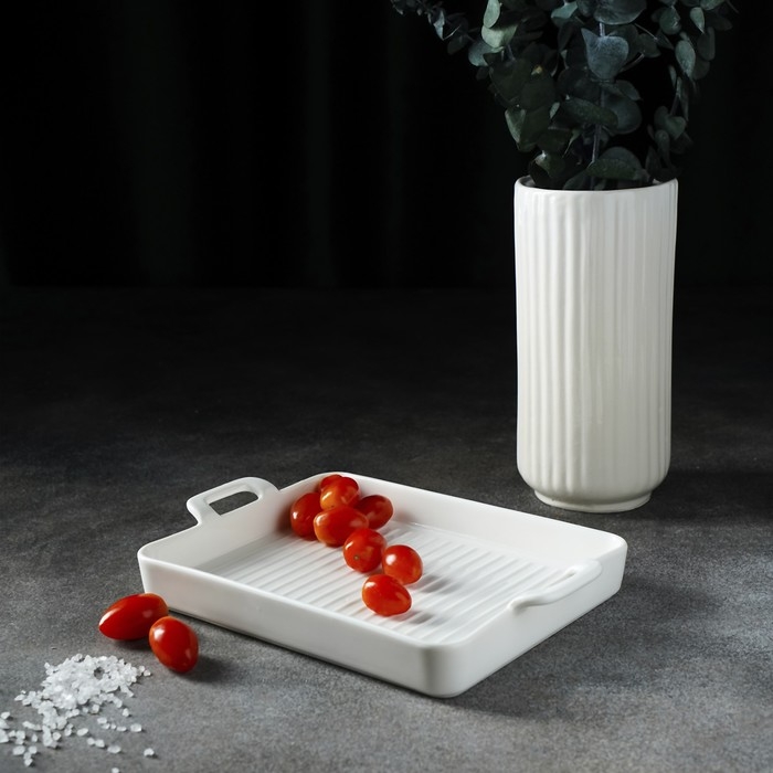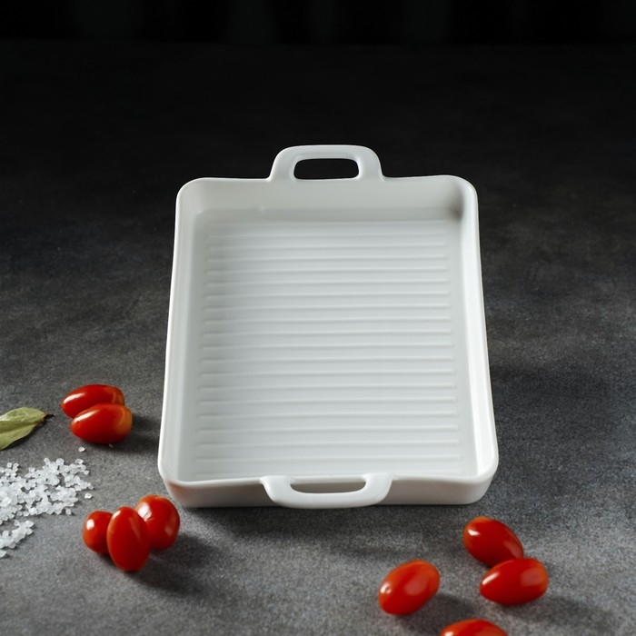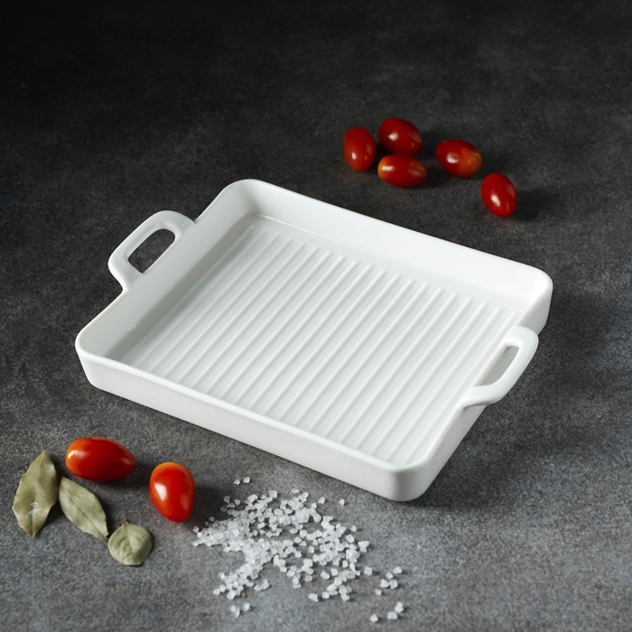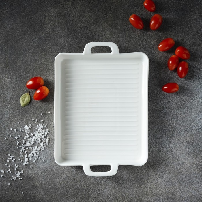 Блюдо фарфоровое для запекания Magistro «Гриль Бланш», 600 мл, 25,3×17,8×3 см, цвет белый