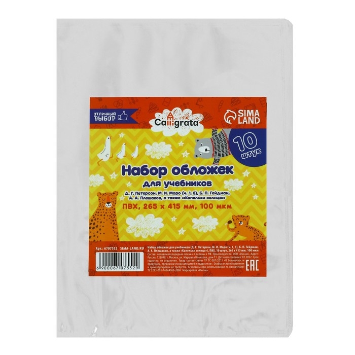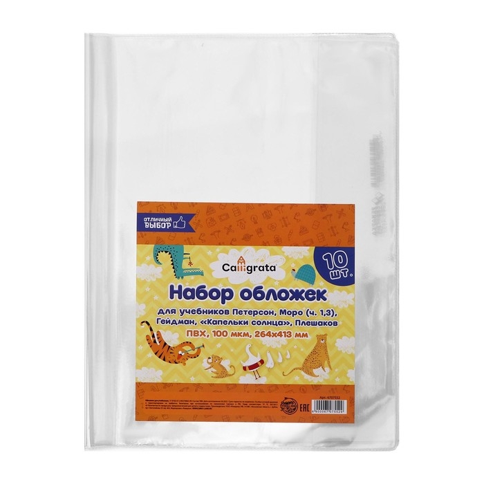 Набор обложек ПВХ 10 штук, 265 х 415 мм, 100 мкм, для учебников Петерсон, Моро (ч.1,3), Гейдман, «Капельки солнца», Плешаков