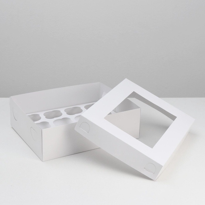 Коробка на 12 капкейков с окном, белая, 32,5 х 25,5 х 10 см, набор 5 шт.