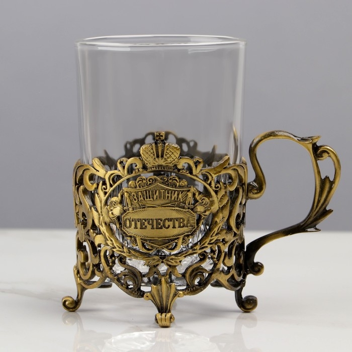 Подстаканник со стаканом "Защитник отечества", 12,5 х 12,5 х 13 см