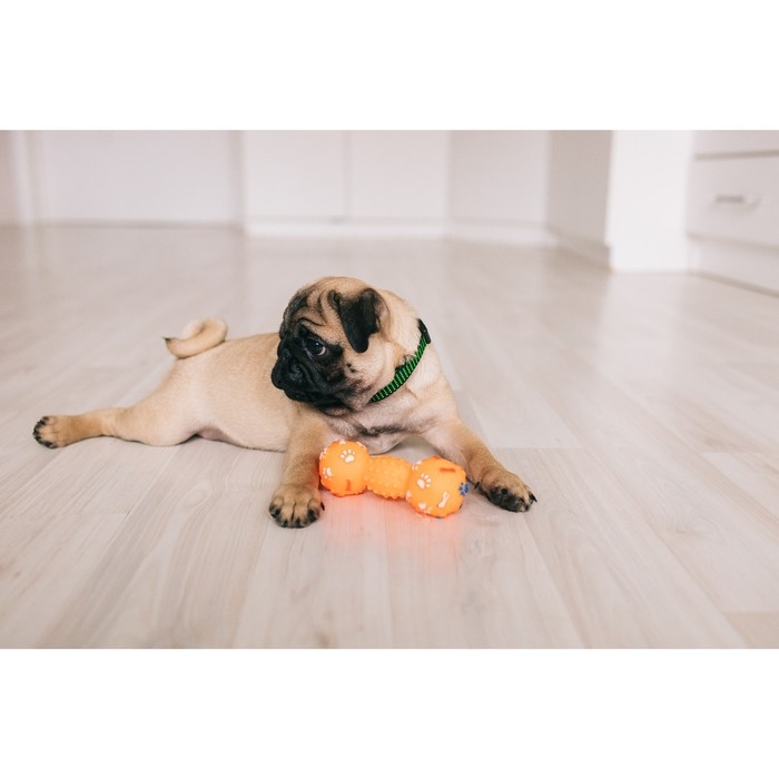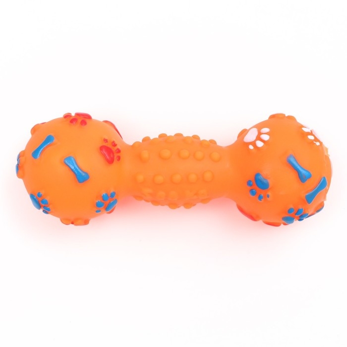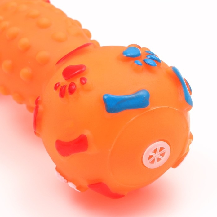 Игрушка пищащая "Гантель с лапками" для собак, 13 см, оранжевая