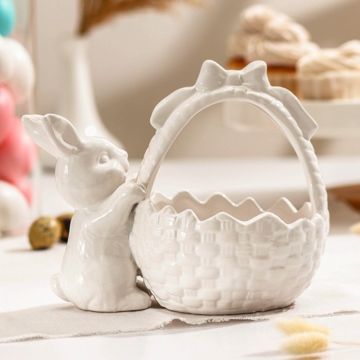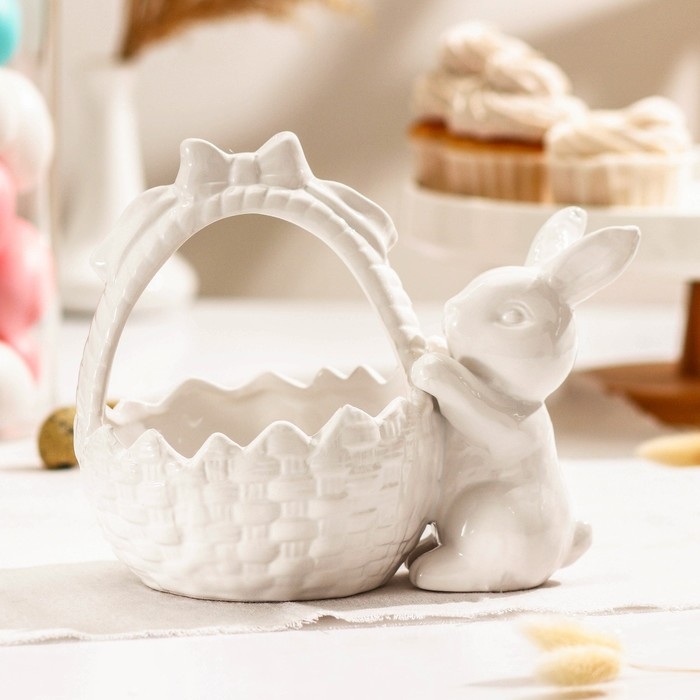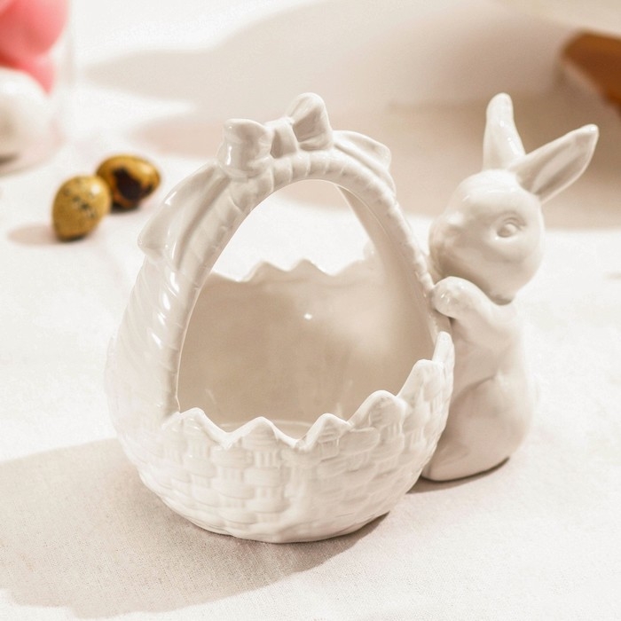 Конфетница SL Home «Лесные кролики», 12,5×8×12 см, цвет белый