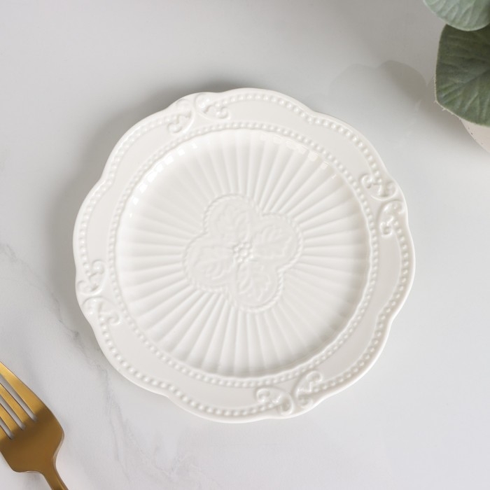 Тарелка керамическая пирожковая Magistro «Этюд», d=15 см, цвет белый