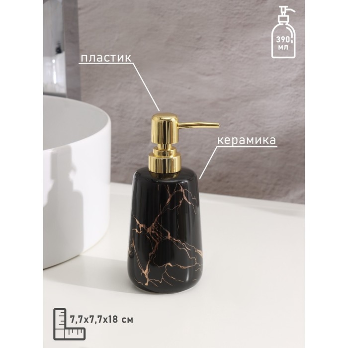 Набор для ванной «Молния», 4 предмета (мыльница, дозатор для мыла 390 мл, 2 стакана), цвет чёрный