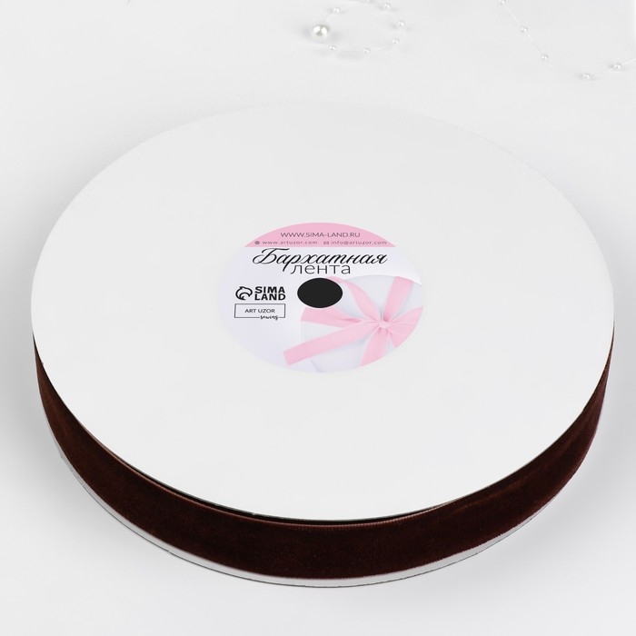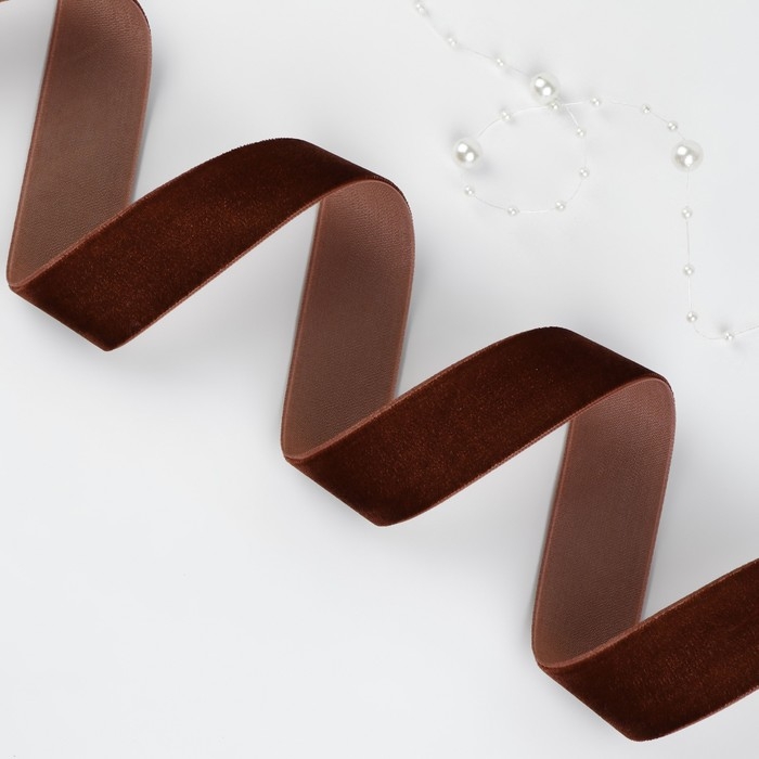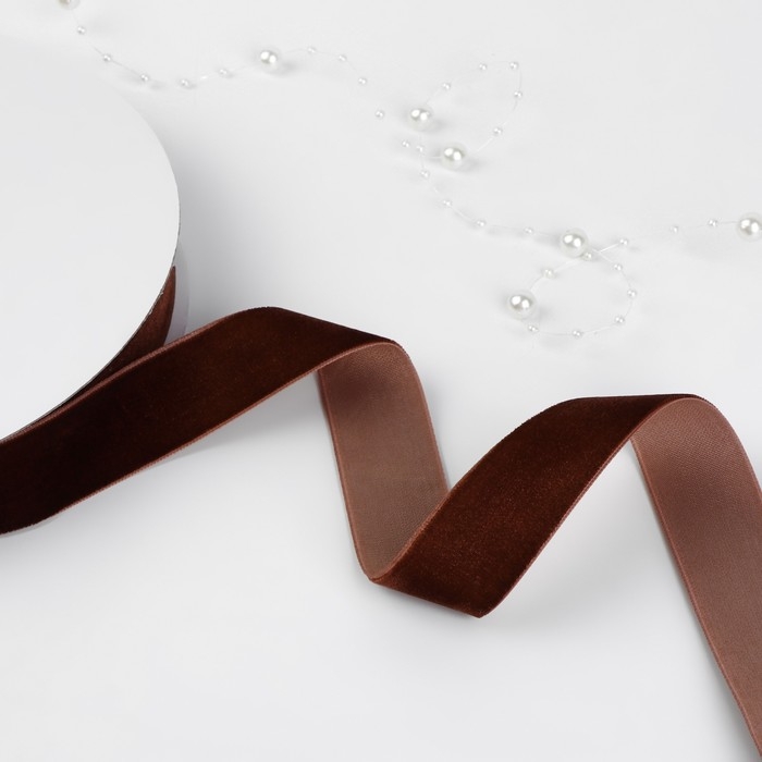 Лента бархатная, 25 мм, 18±1 м, коричневая №119