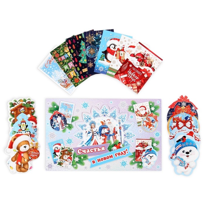 Набор открыток-шильдиков "Счастья в Новом году!" 31х36 см, 140 штук